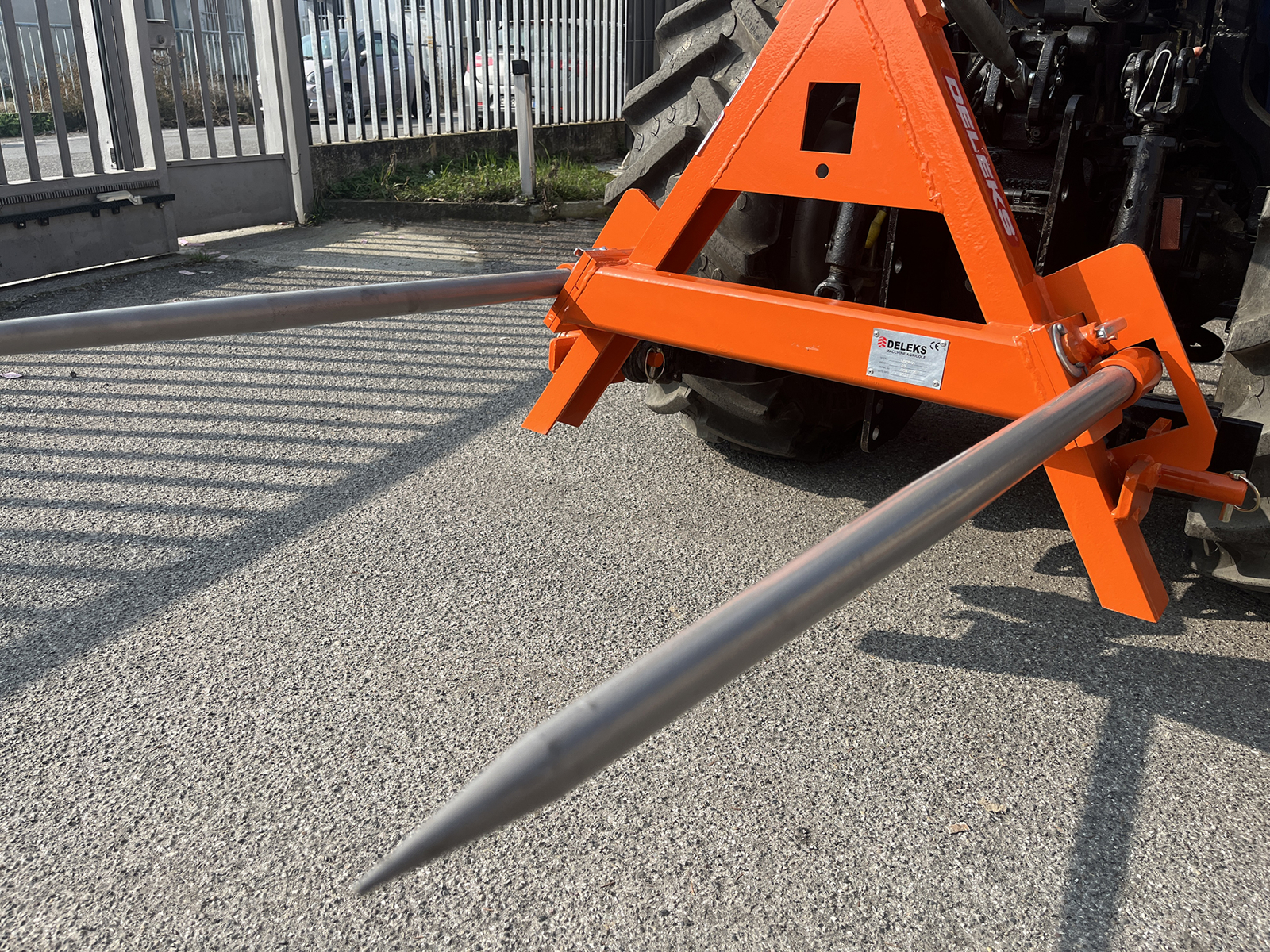 DELEKS® Ballengabel, Ballenspieß, Ballentransportgabel Heckanbau für Schlepperdreieck, Klappbar.