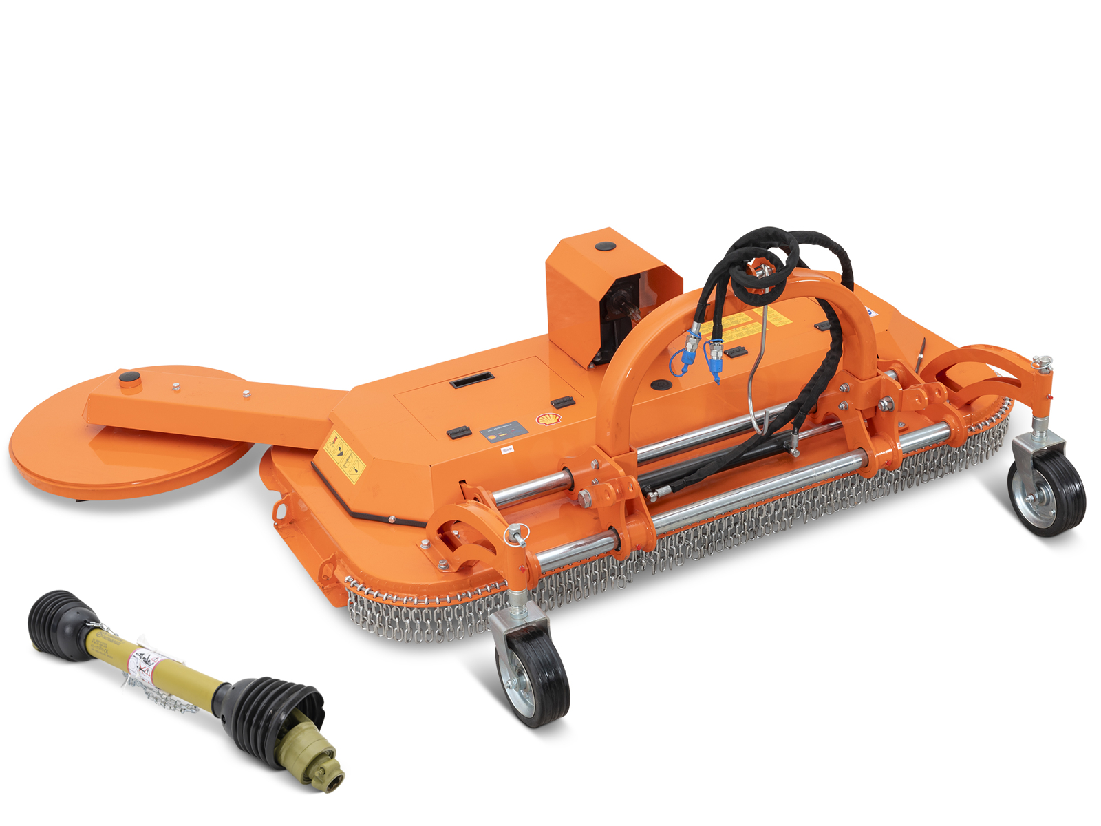 Die leichte Struktur ermöglicht den Einsatz selbst mit den kleinsten Traktoren und mulcht sowohl auf ebenem als auch abschüssigem Gelände.
