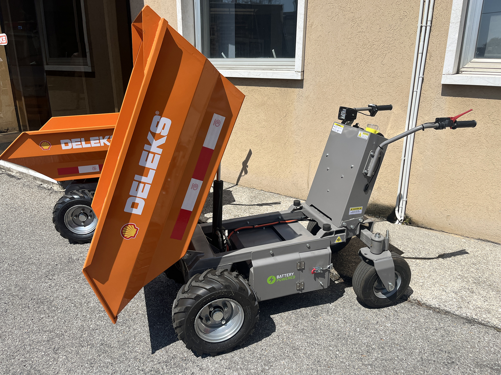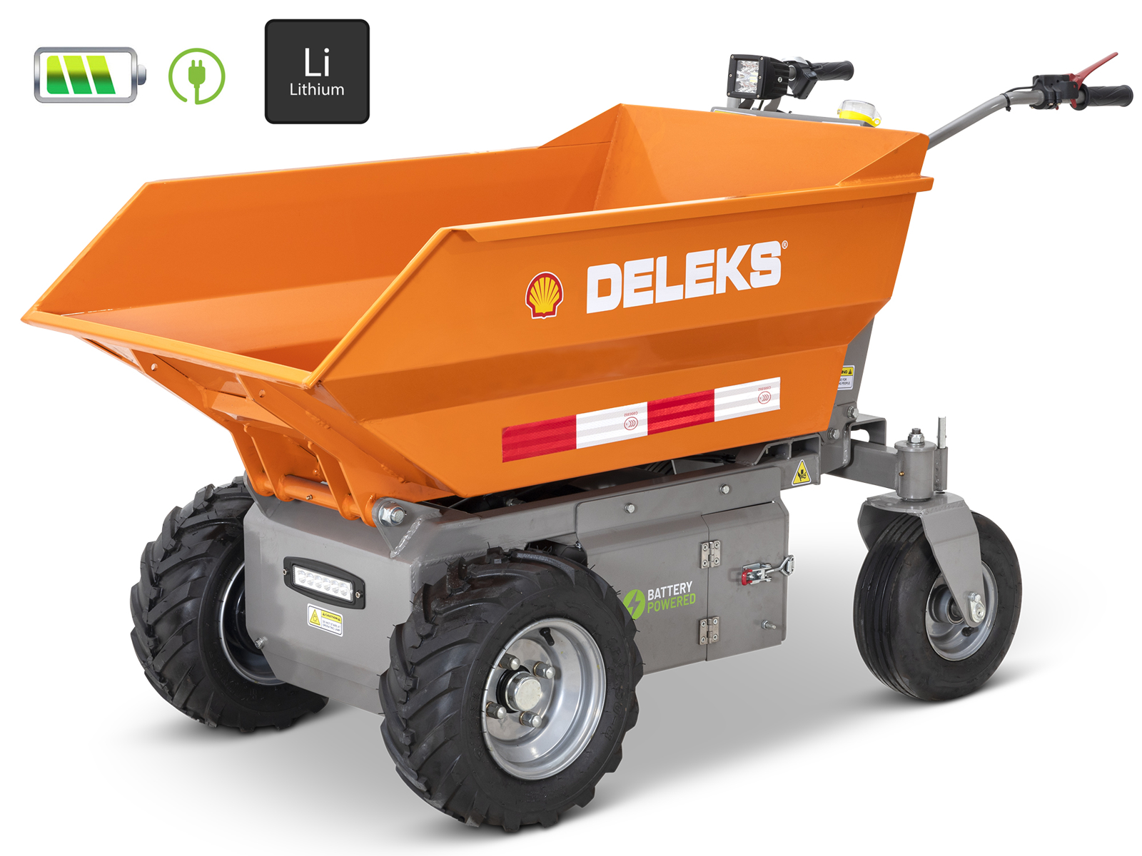 DELEKS® XE-500He Lithium elektrifizierte Schubkarre Minidumper mit Elektromotor, 48V 60Ah herausnehmbare Lithium-Batterie, hydraulischem Kippen, Muldenkipper, Traglast 500kg.