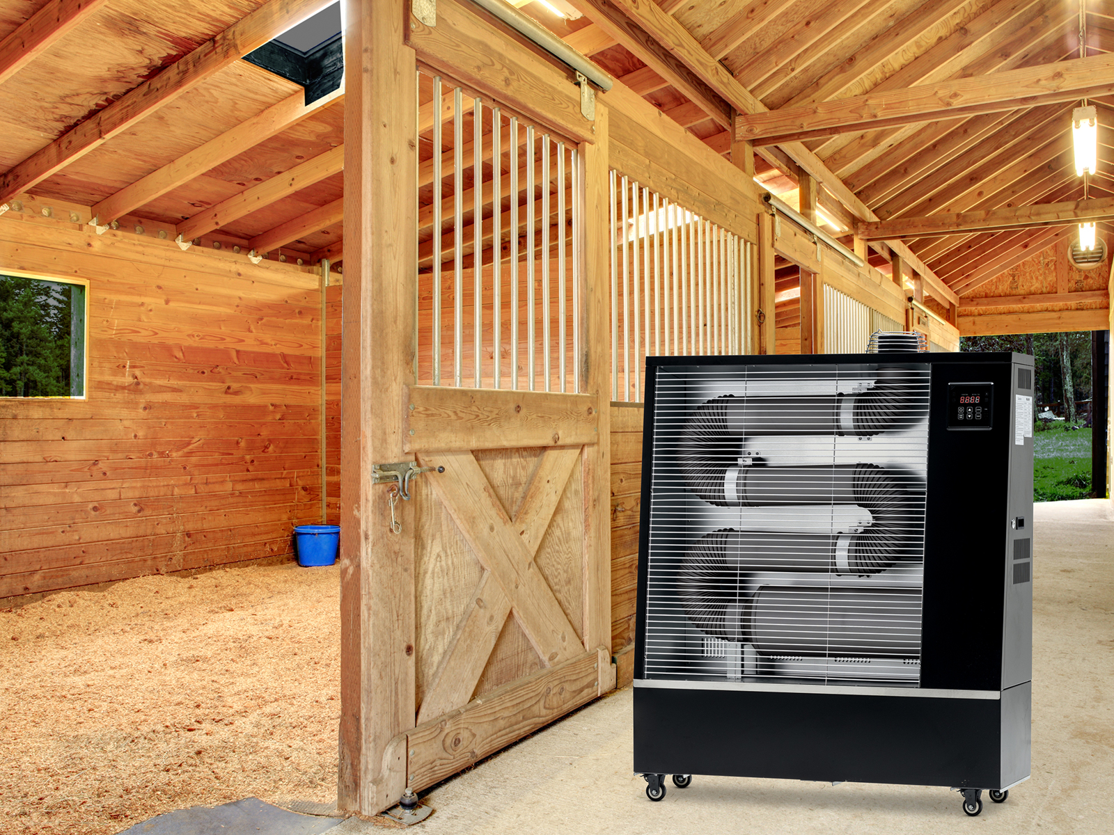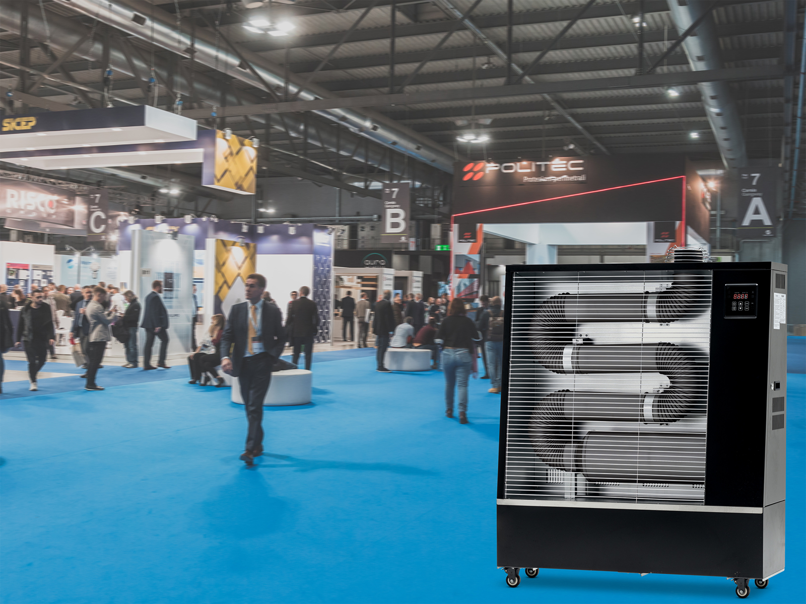 Innovatives Heizsystem für belüftete, geschlossene Räume ( Werkstätten, Gewerbe, Industrie, Landwirtschaft, Lager, Turnhallen) und Außenbereiche wie Gewächshäuser, Terrassen, Baustellen, etc.