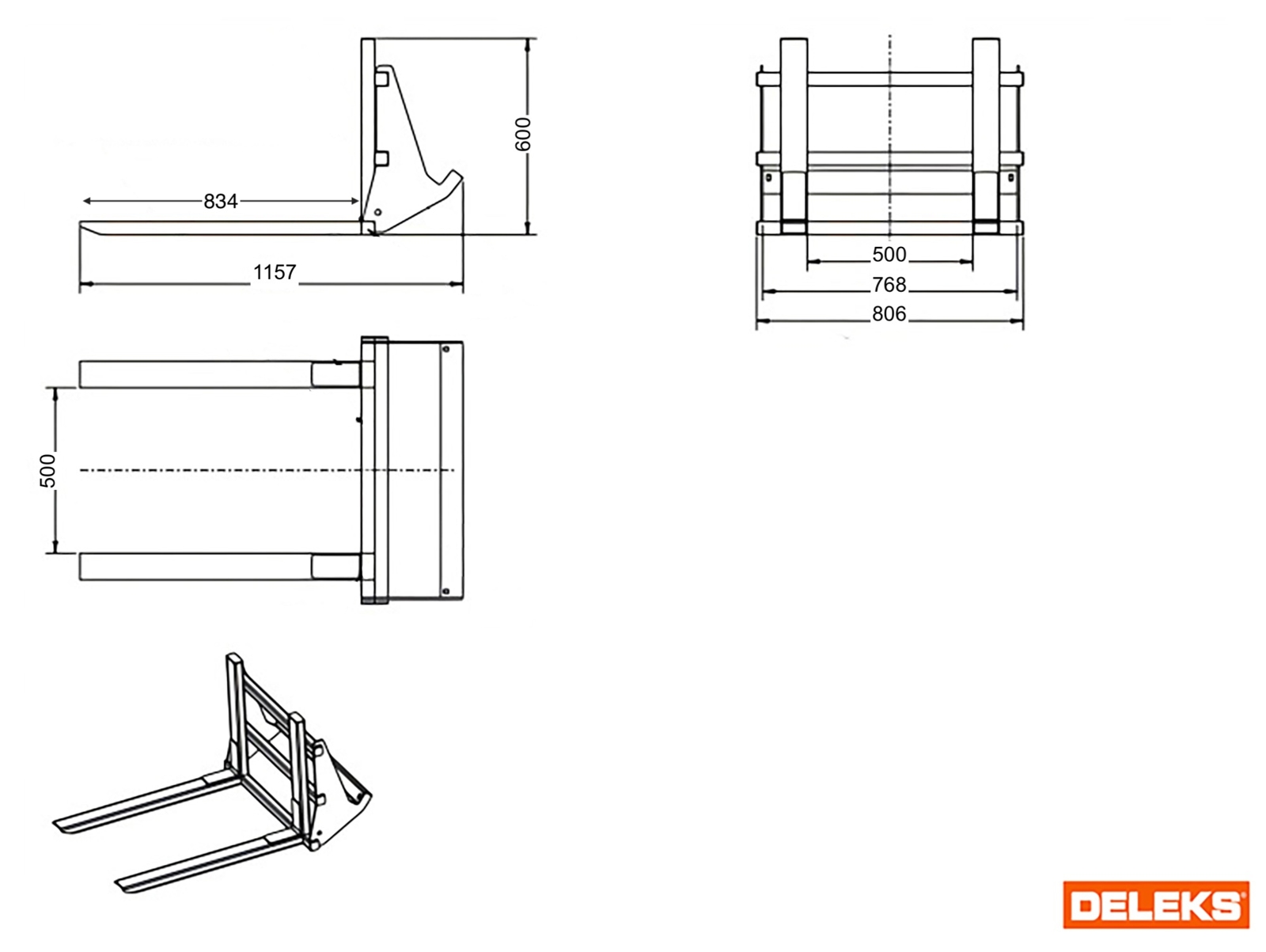 Die nutzbare Gabellänge von 834 mm ermöglicht die korrekte Aufnahme einer EUR-Palette (120 × 80 cm) und gewährleistet Stabilität und Präzision.