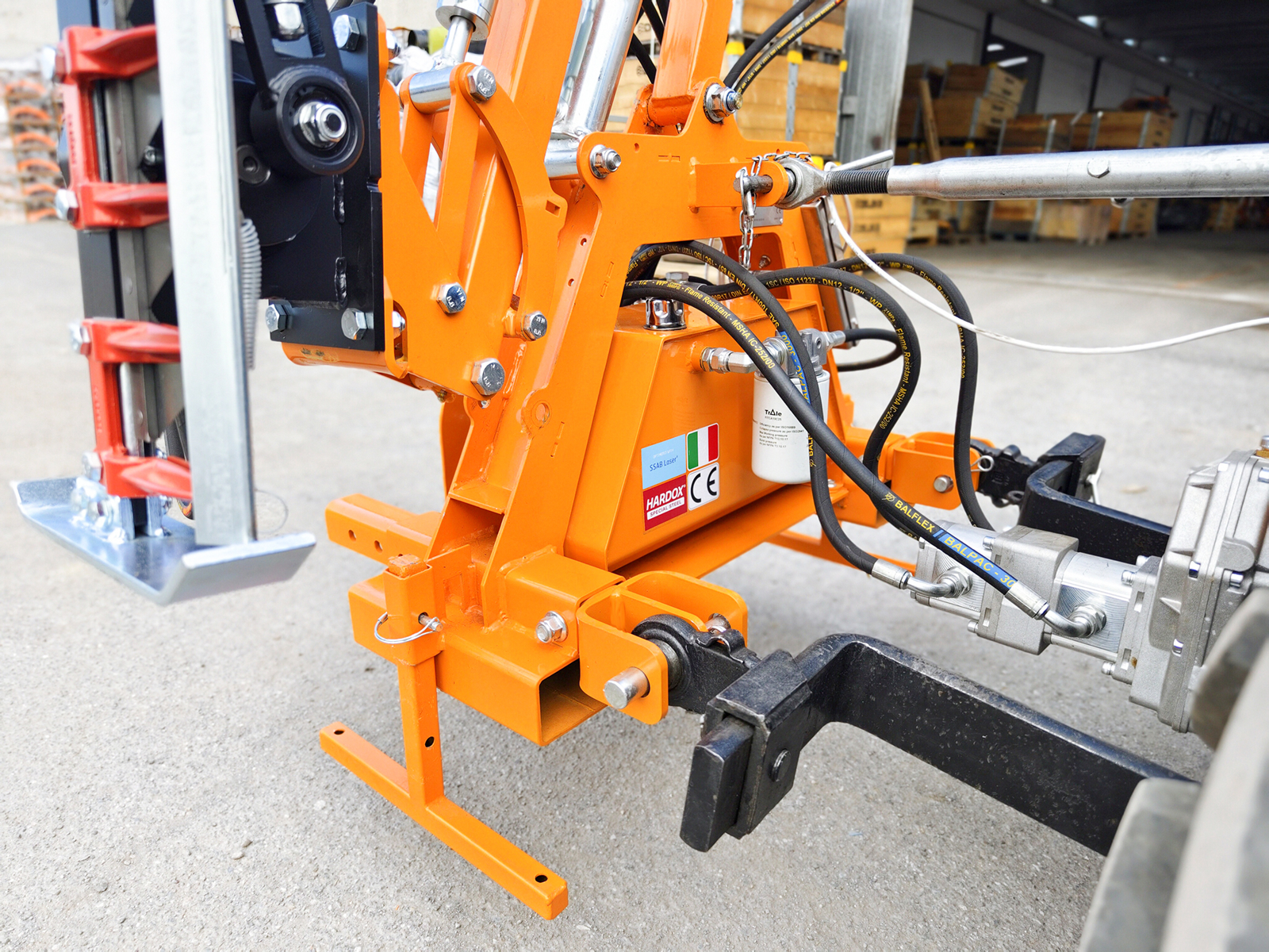 Symmetrische Struktur und doppelte 3-Punkt-Anhängung Kat. 1-2, die jeden Schnittwinkel auf beiden Seiten des Traktors ermöglicht und sowohl vorne als auch hinten verwendet werden kann, ohne Modifikationen an der Maschine.