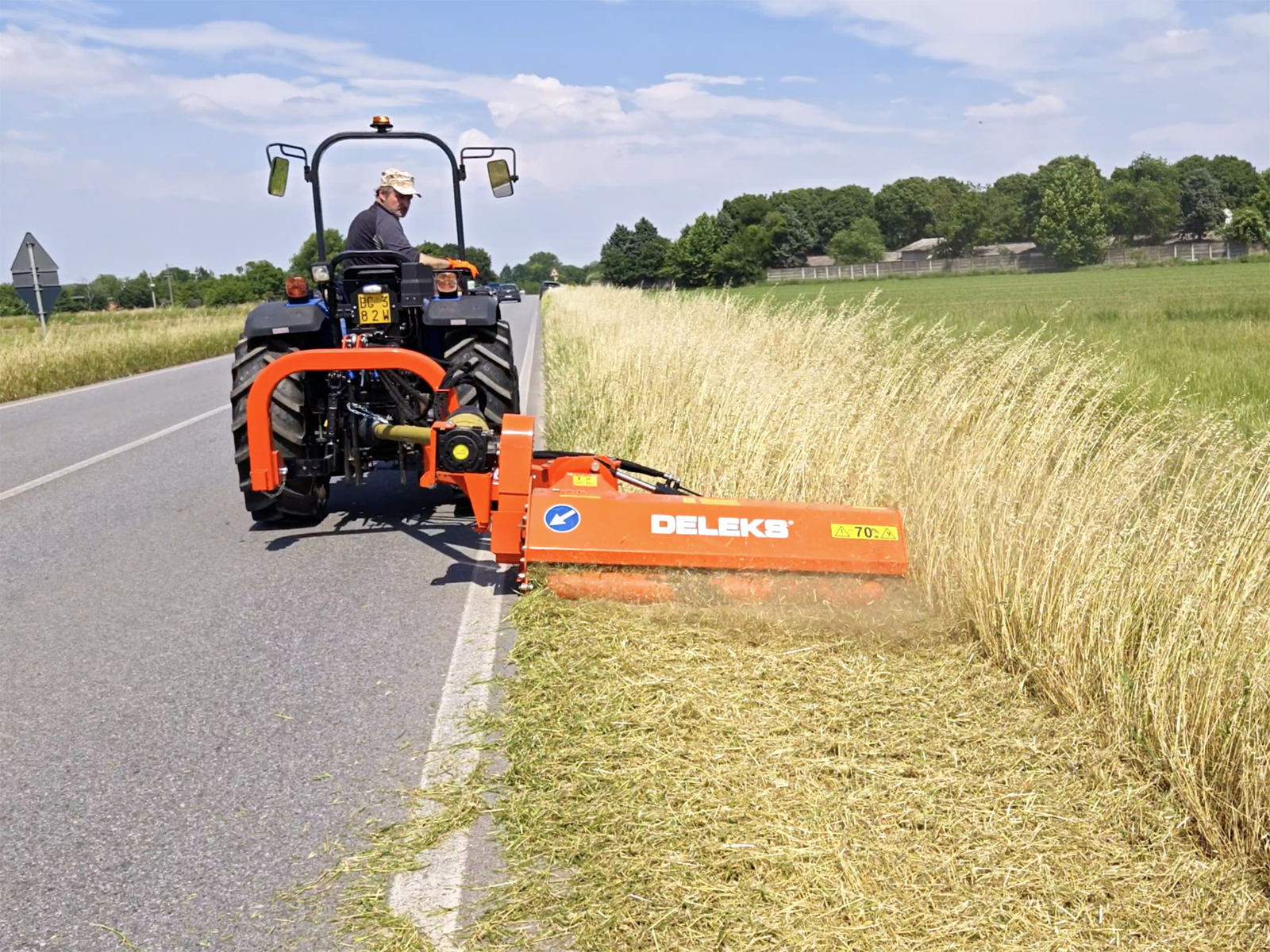The GIRAFFA-130 multi-purpose mower is for home and professional use and is extremely popular among organic farmers to tackle rushes, brambles and hedges. The GIRAFFA cuts grass, but also shreds small twigs and branches 4-5cm thick making it ideal for docks, thistles and long, thick grass on roadsides. It can also be used for pruning and trimming bushes as it can be hydraulically angled vertically (90º) or down (65º) for riverbanks, verges and ditches. This mower is attached to the tractor using universal three point linkage and fits most 40-70hp tractors e.g Kubota, Ford, New Holland T3F, McCormick, John Deere 3, Ford, Lamborghini.