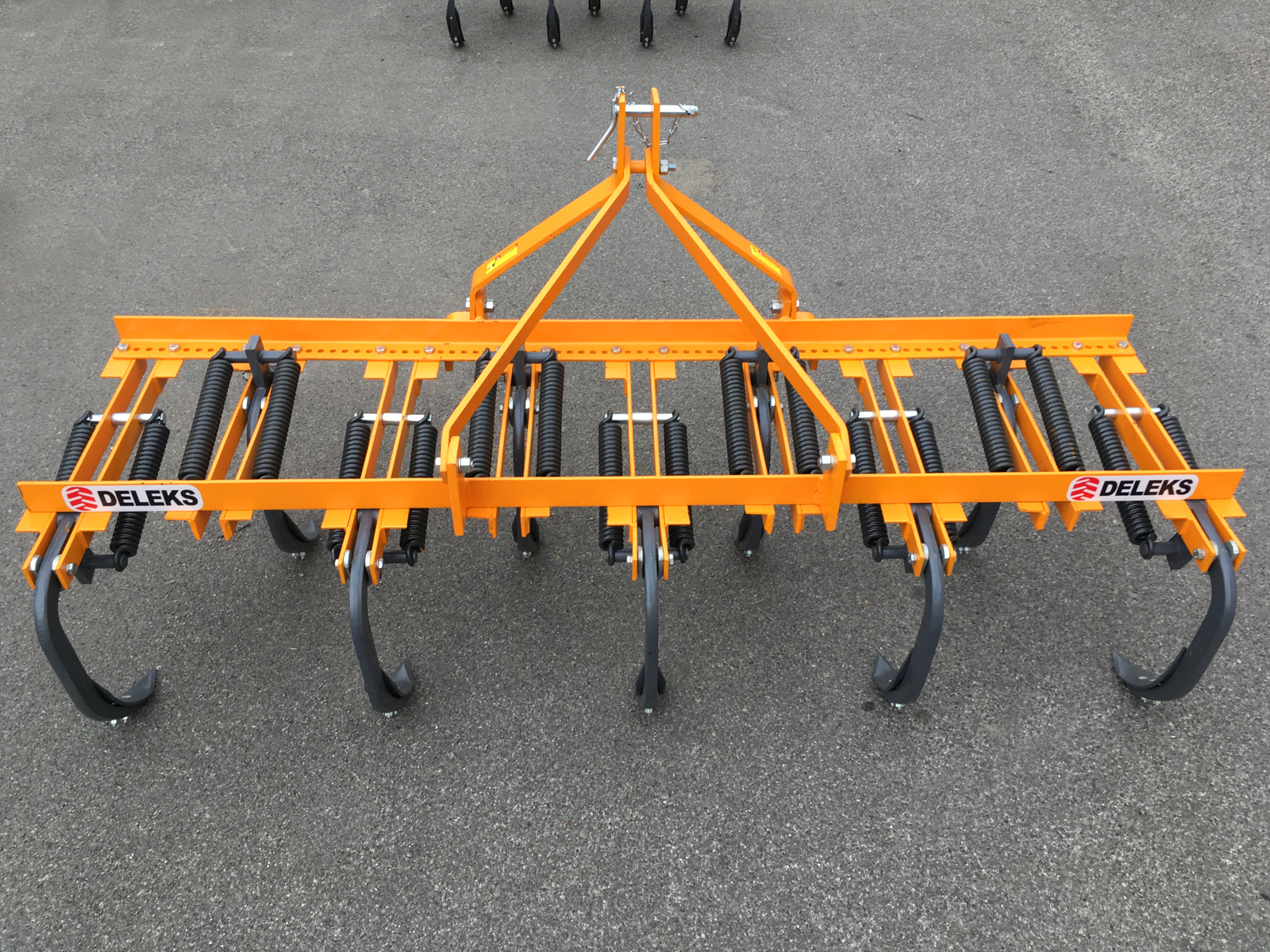 DE-215/9-V Grubber, Kultivator, entworfen für die Bearbeitung kleinerer bis mittlerer Ackerböden. Geeignet für alle mittelschweren Traktoren, bereift, von 35–50 PS, wie z.Bsp. New Holland, John Deere, Deutz, Steyr, Gudbrod, Carraro, Same, Landini, Kubota, uvm. Universal 3 – Punktaufnahme der Kategorie 1 – 2. CE – Zertifizierung, 2 Jahre Garantie.