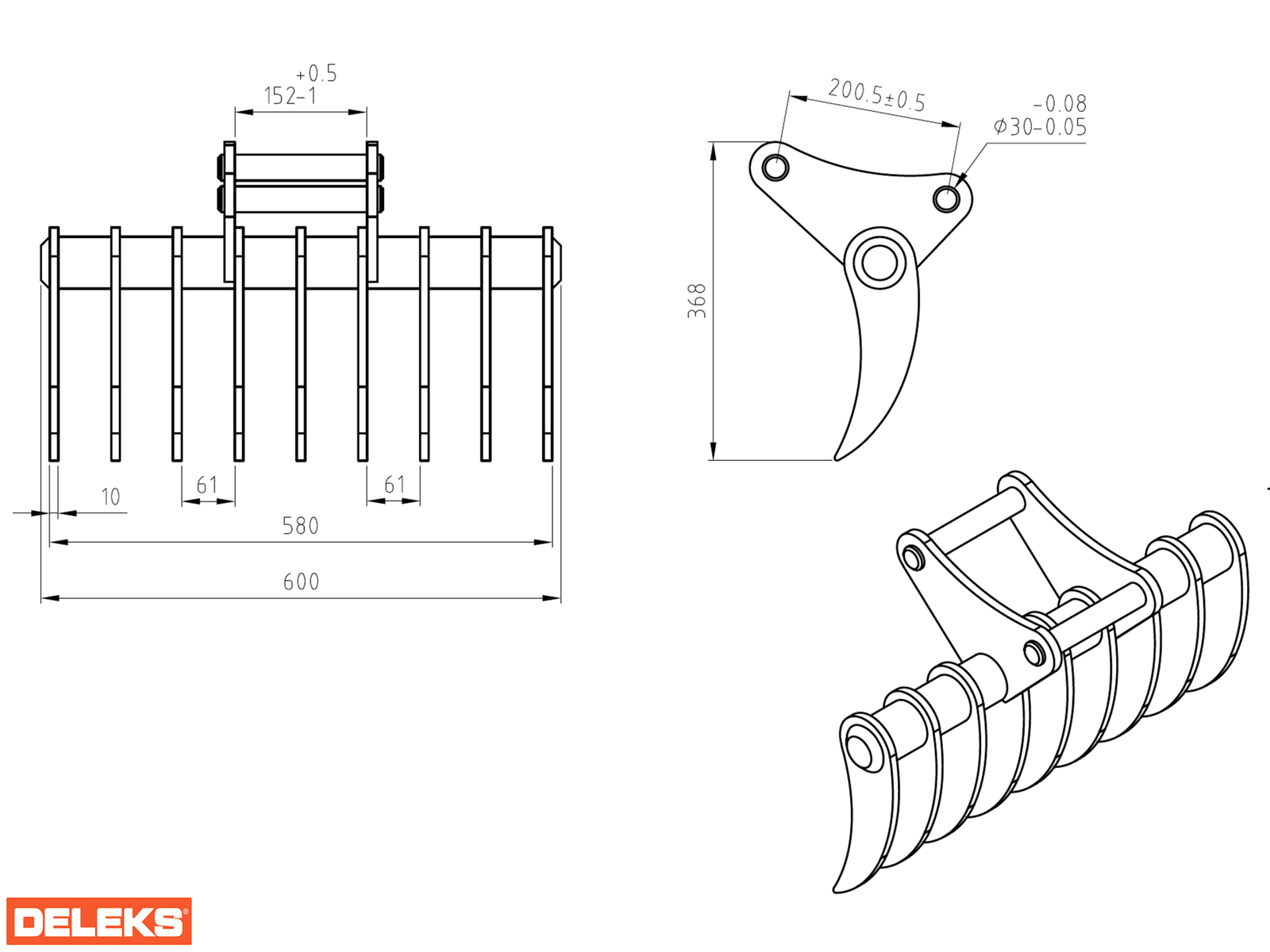 Rechen für  DELEKS® S100 und KUBOTA K008-3, U10-3, K008-5, U10-5 minibagger.