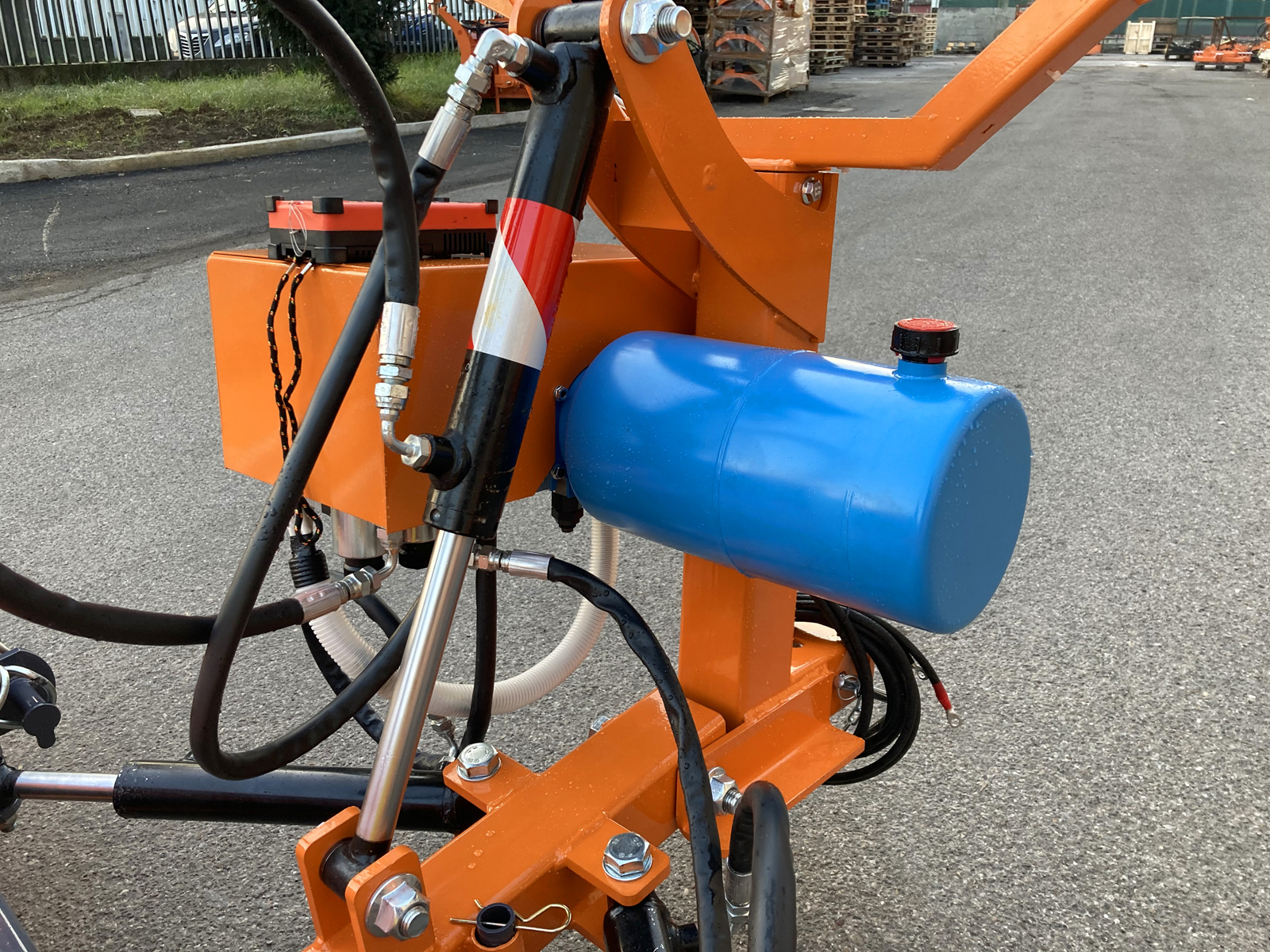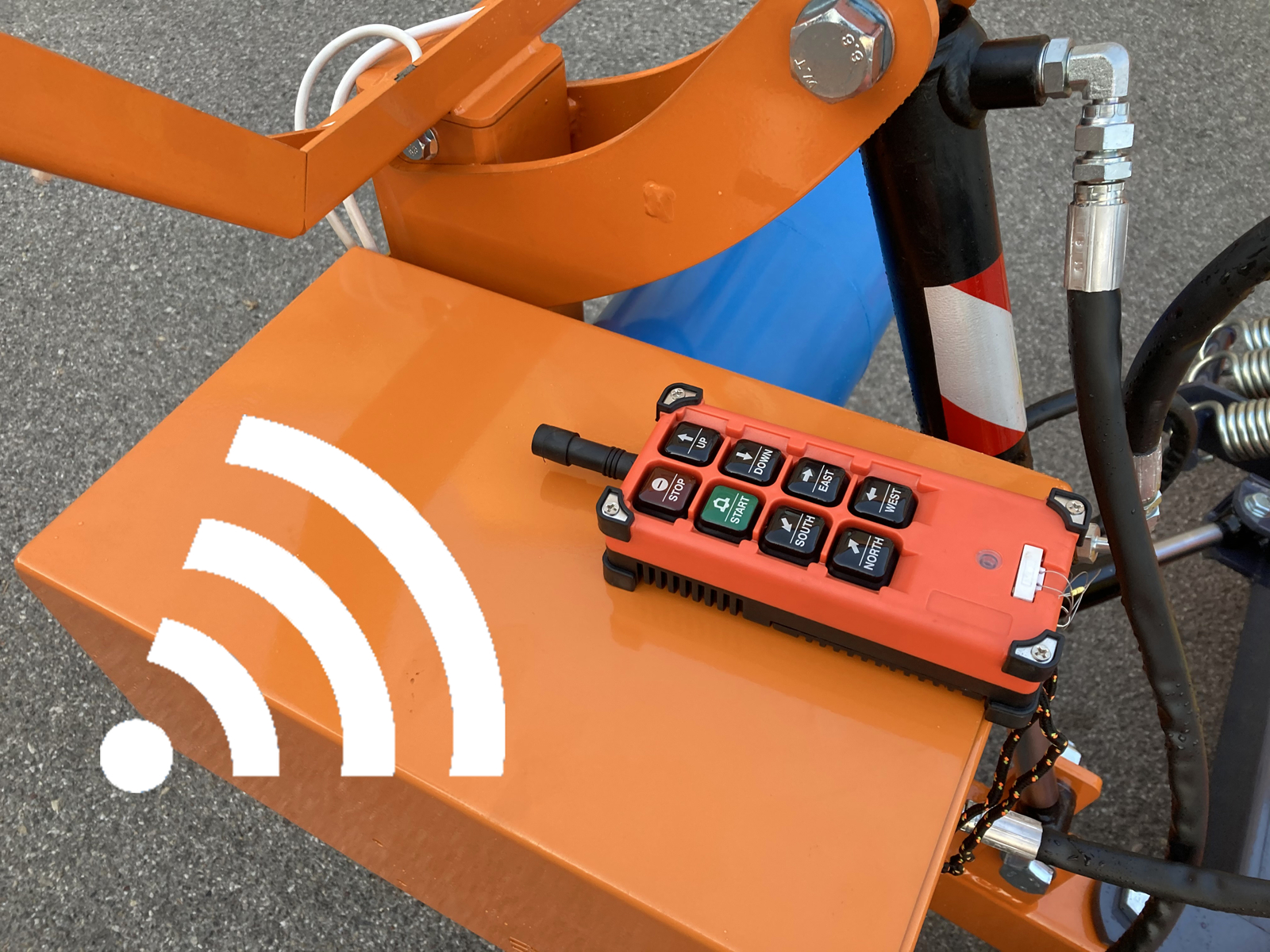 12 V Hydraulikpumpe der Marke Bucher Hydraulics, Öltank, 2 elektrische Steuerventile, 2 Hydraulikzylinder für Heben – Senken – Rechts – Links.