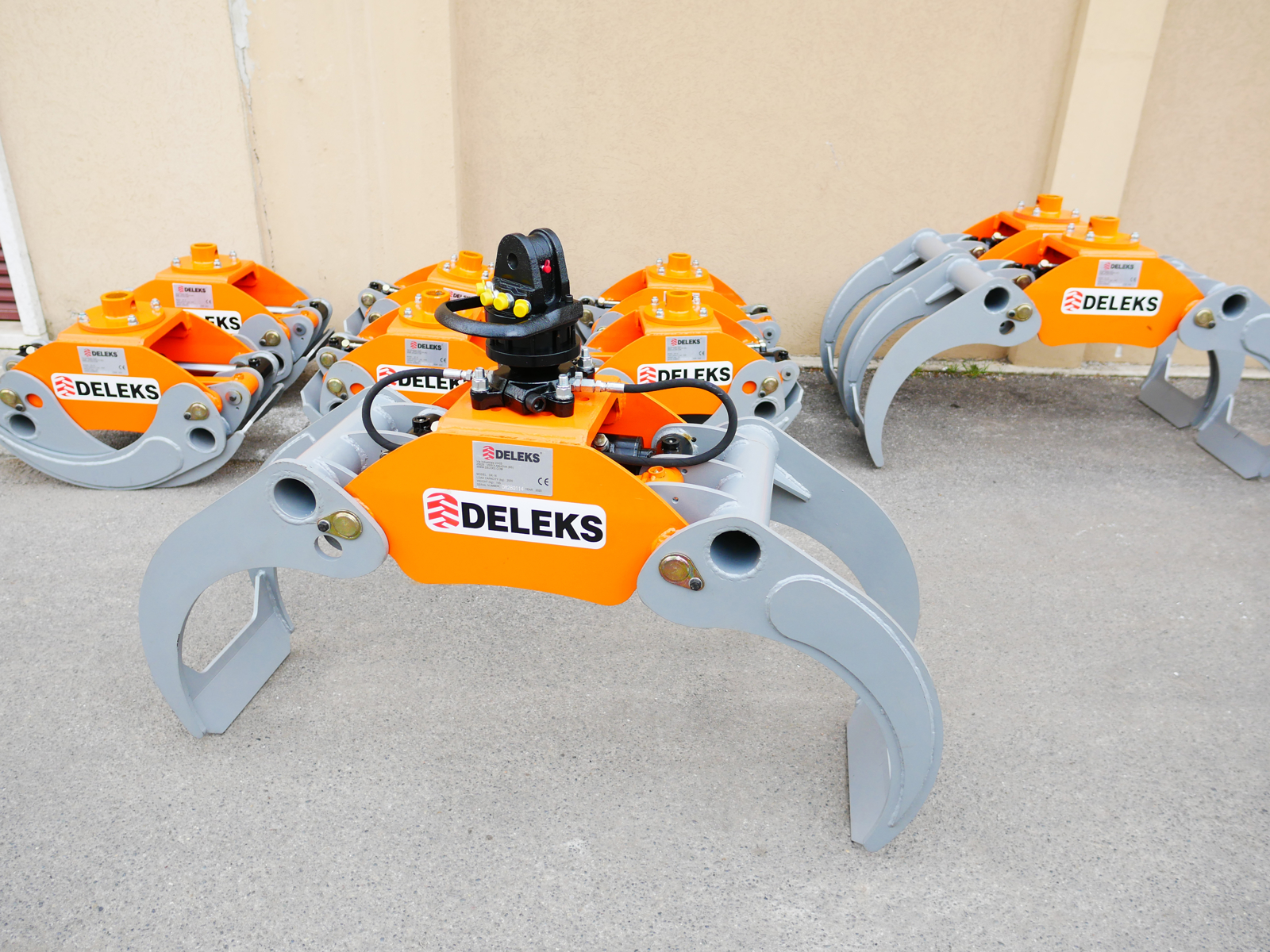 Holzzange, Holzgreifer DELEKS® für Kräne und Mini-Bagger 4,0 bis 8,0t  DK-16 + Rotor Lombarda Ingranaggi GR30-F