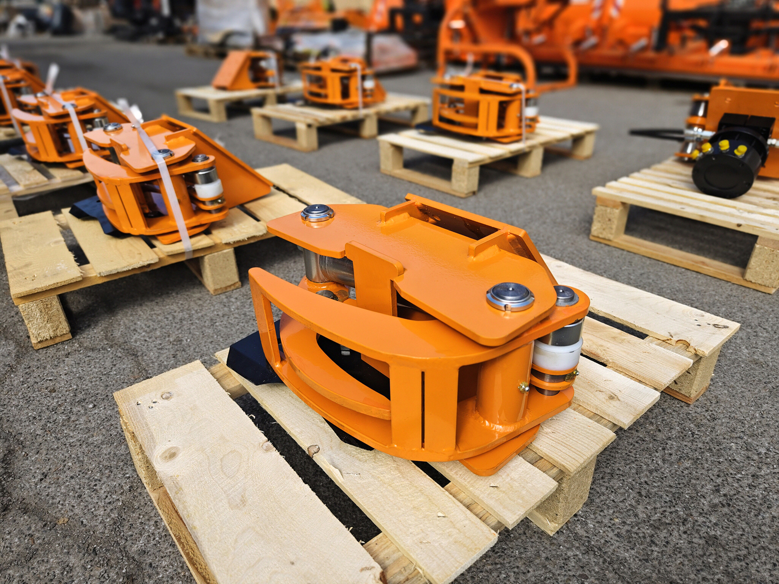 Hydraulischer Fällgreifer – italienische Produktion – 100% Hardox, Klinge aus gehärtetem Stahl, zum Schneiden und Bearbeiten von Bäumen und Stämmen ø 10 cm.