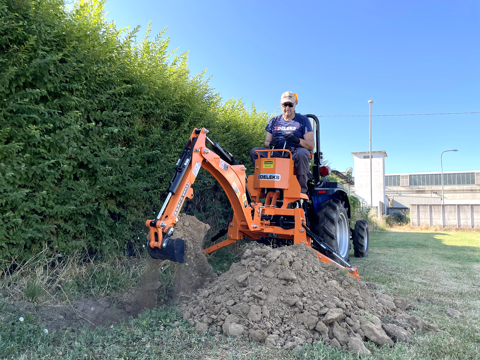 Universeller Mini Heckbagger für Traktor - DELEKS® DRS-1000 - 270kg - Externe Hydraulikpumpe.