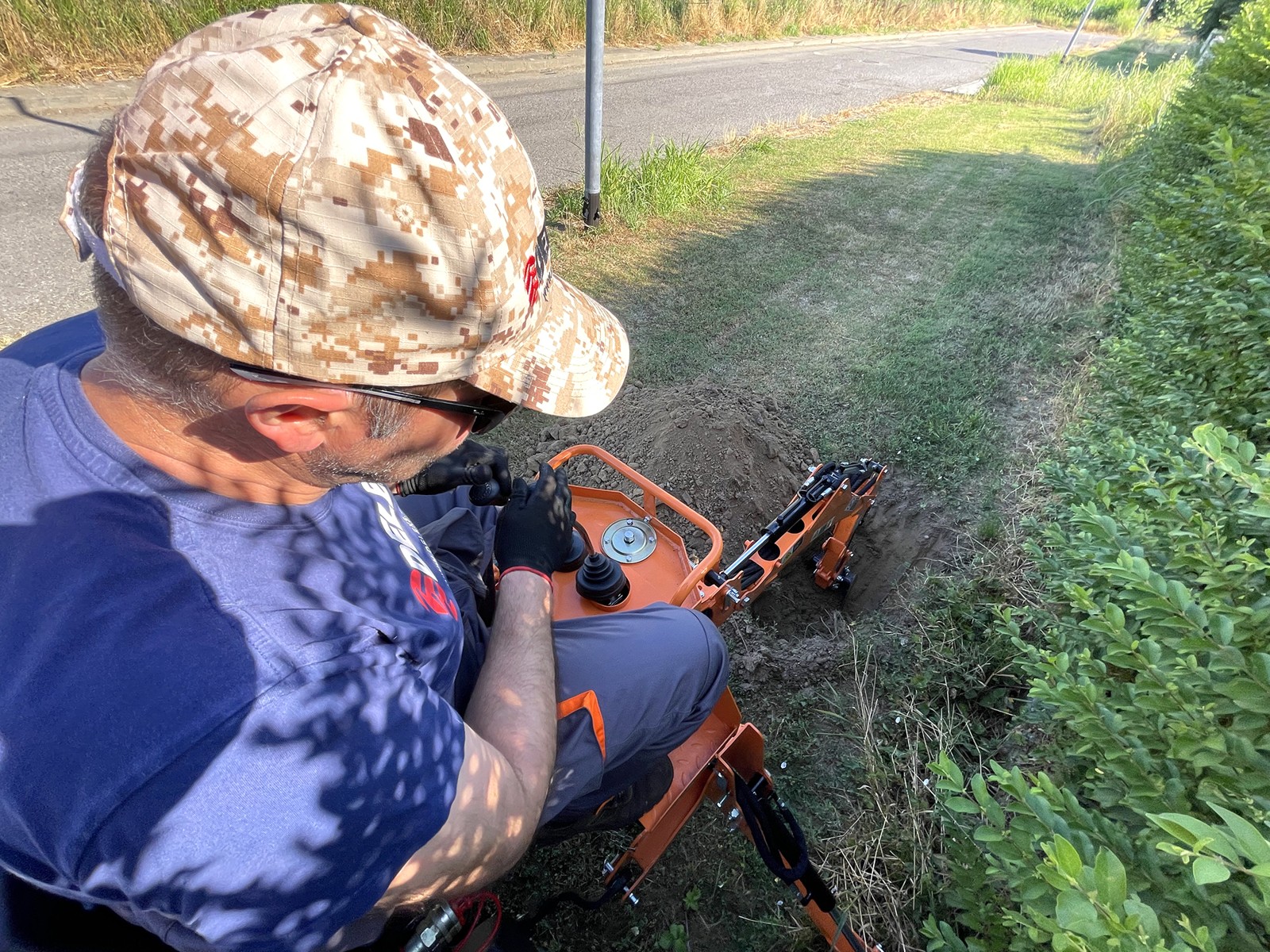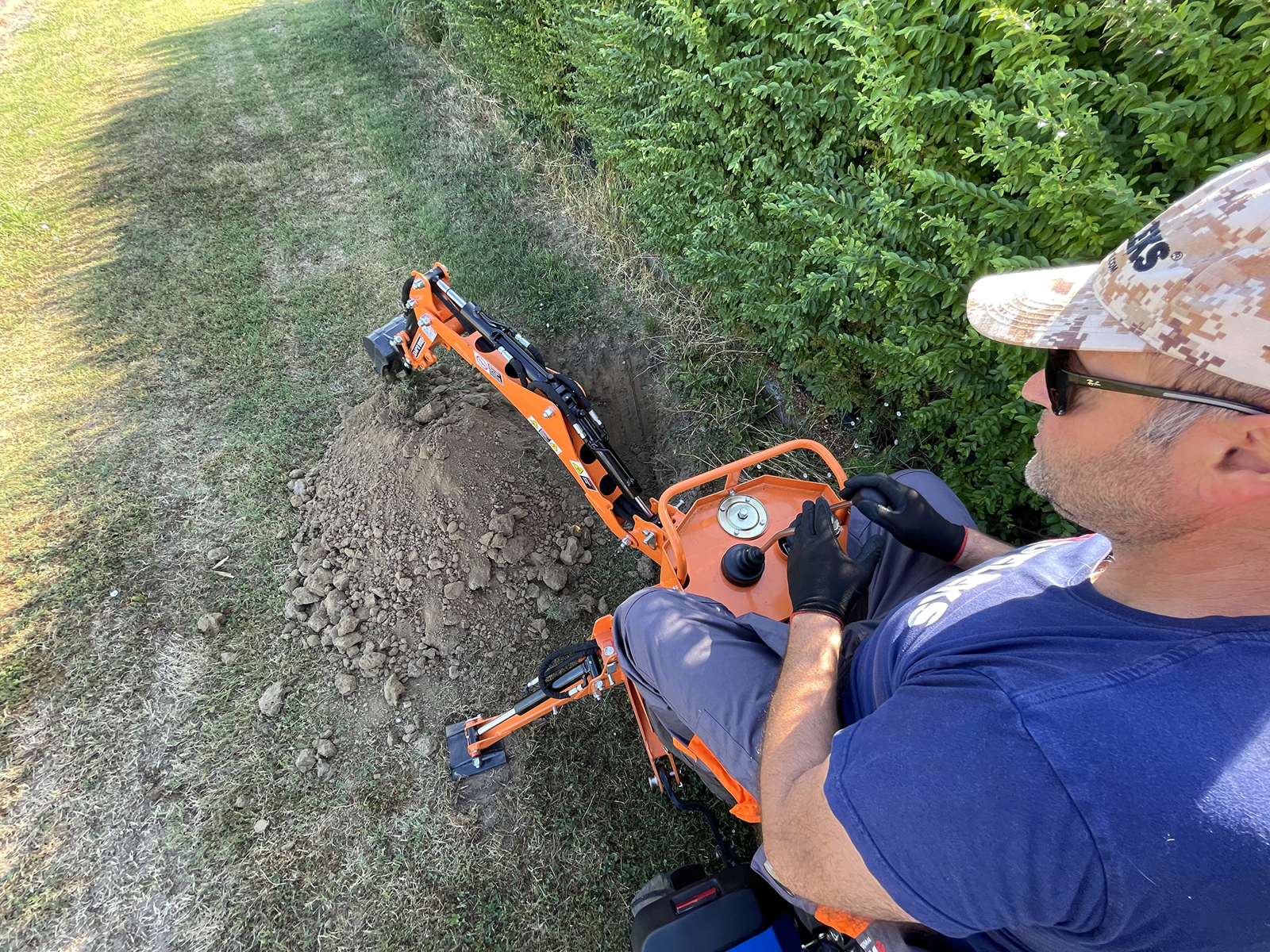 Schmaler Baggerarm für gute Übersicht beim Graben.