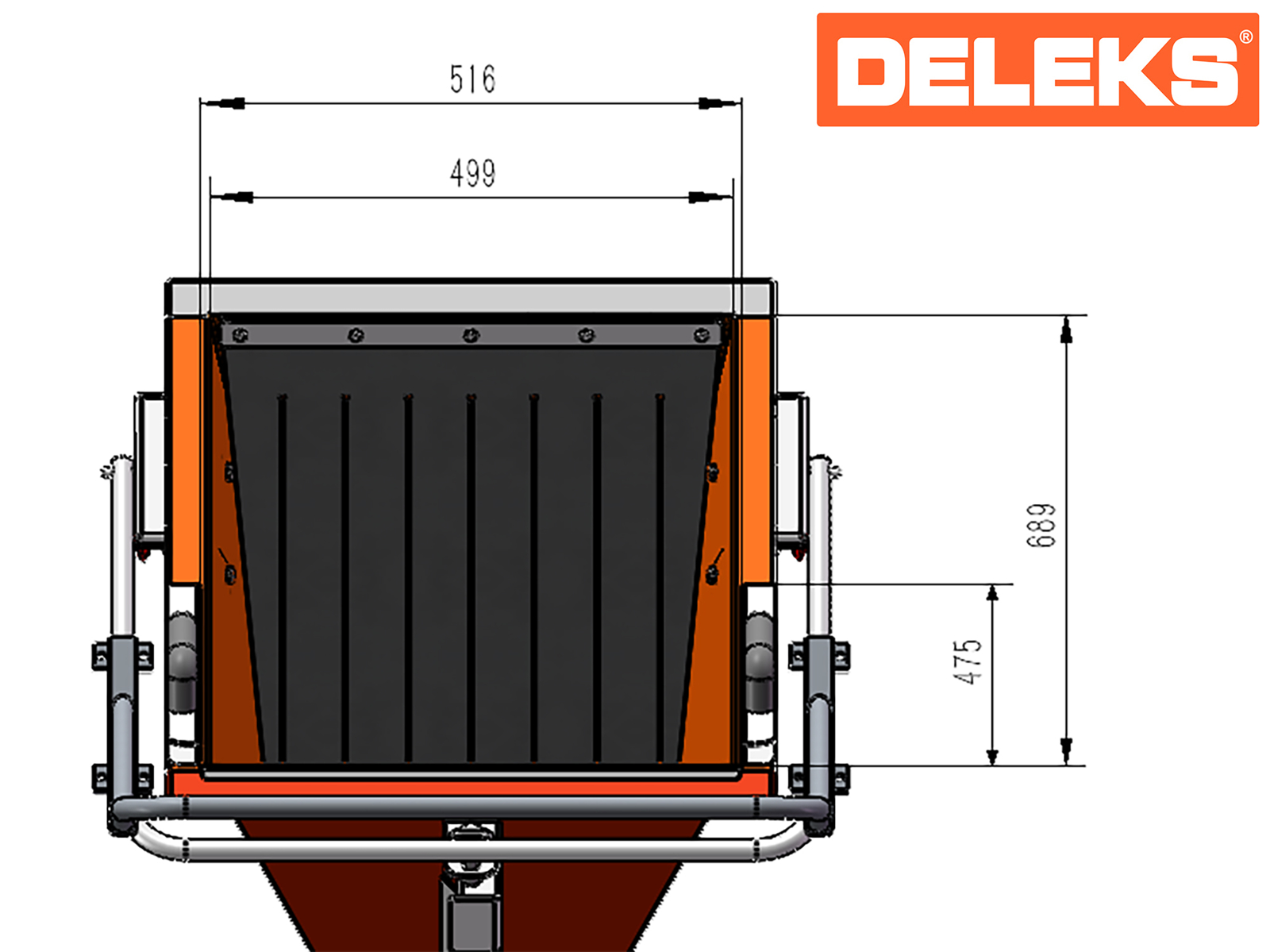 Redesigned outlet made with a thicker tubular. Its height of 1,8 m allows the material to be discharged directly into compost containers or on the truck body. In a few seconds with the two butterfly levers it is possible to adjust the direction or remove it.