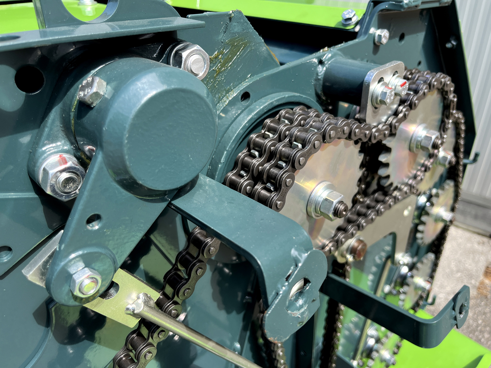 Diese Rundballenpresse kann an Traktoren angeschlossen werden - Zapfwellenbetrieb. Sie wird an der Heckdreipunktaufhängung des Traktors angebracht.