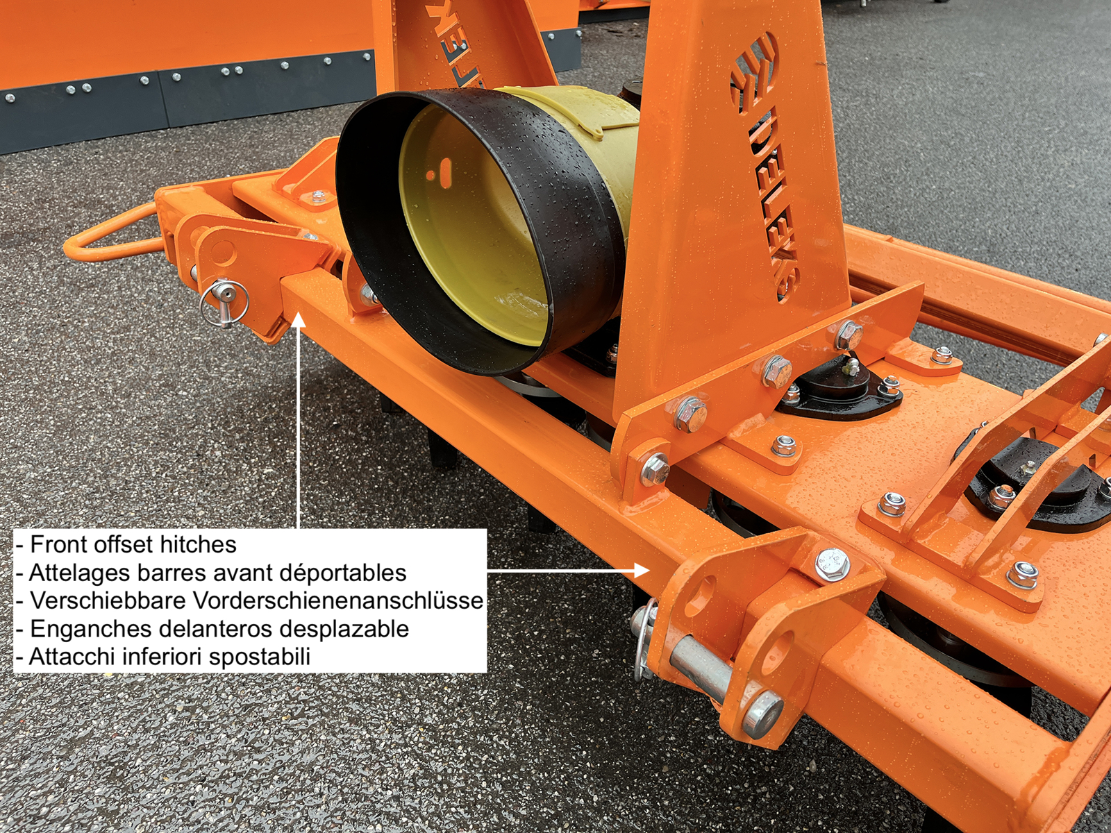 DELEKS® Kreiseleggen - 125cm - für Obstbautraktoren, von 19 bis 37 kW (25-50 PS), mit hinterer Käfigwalze als Standard und Untersetzungsgetriebe für Zapfwelle 540 U/min.