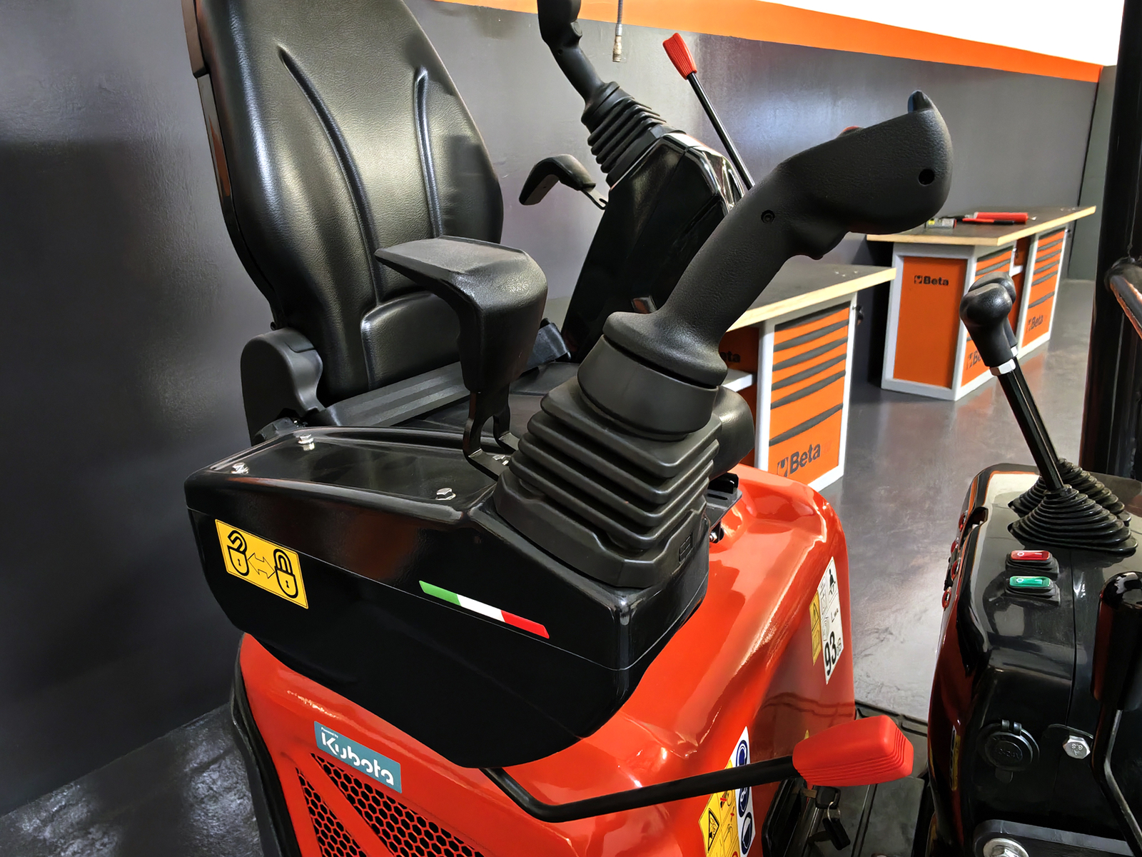 Die ergonomischen seitlichen Joysticks aus Italien sorgen für eine natürliche Körperhaltung und präzise Steuerung, während das italienische Hydraulikventil sanfte und gleichmäßige Bewegungen ermöglicht – selbst unter Last.