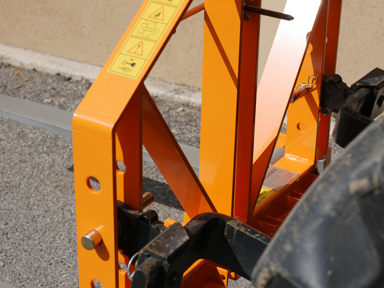 The D-700 Pallet Forks with a loading capacity of 700kg, making it ideal for use on farms and ranches, construction sites, nurseries, campuses, theme parks, and for warehouse work. Universal forks for pallet lifting. Designed to fit most medium size tractors e.g New Holland T3030, T4F, John Deere 4-5 Series, Landini Mistral, Lamborghini Ego 45-55, McCormick, Kubota L, Same Solaris, CASE, Deutz-Fahr, etc. EC Conformity, 2 Year warranty.