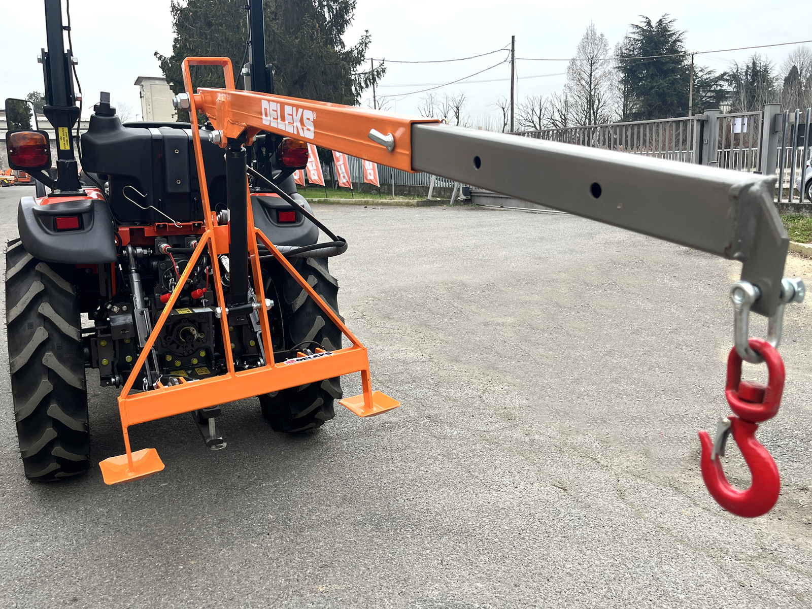 Hydraulic Crane For Compact Tractors KUBOTA, JOHN DEERE… DELEKS®- Arm can be extended in three steps.
