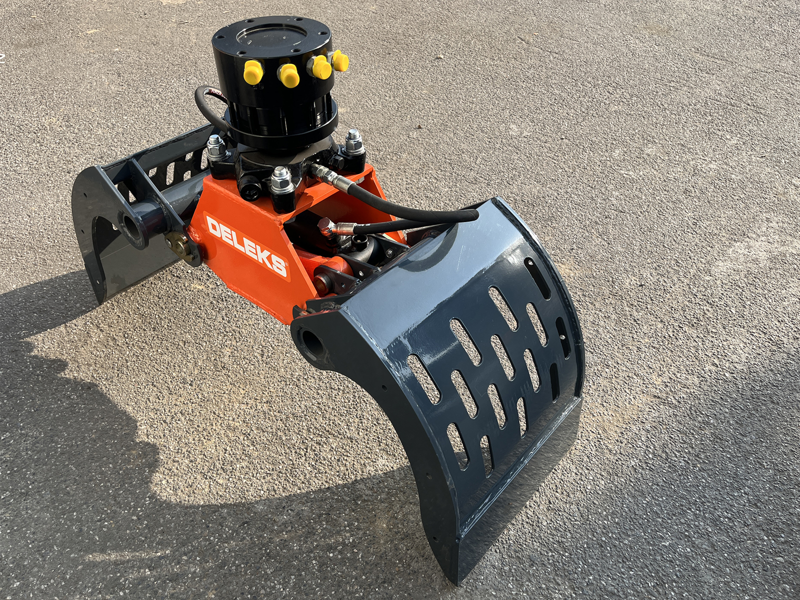 Stone grapple, Sorting grapple for Mini Diggers and Forest Cranes 0.8 – 2.5 Ton - DELEKS® DKP10 + Flanged Lombarda Ingranaggi GR-30FF Rotator.