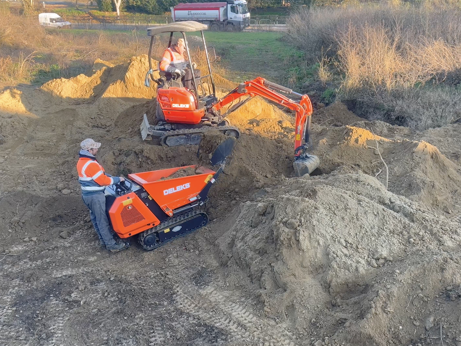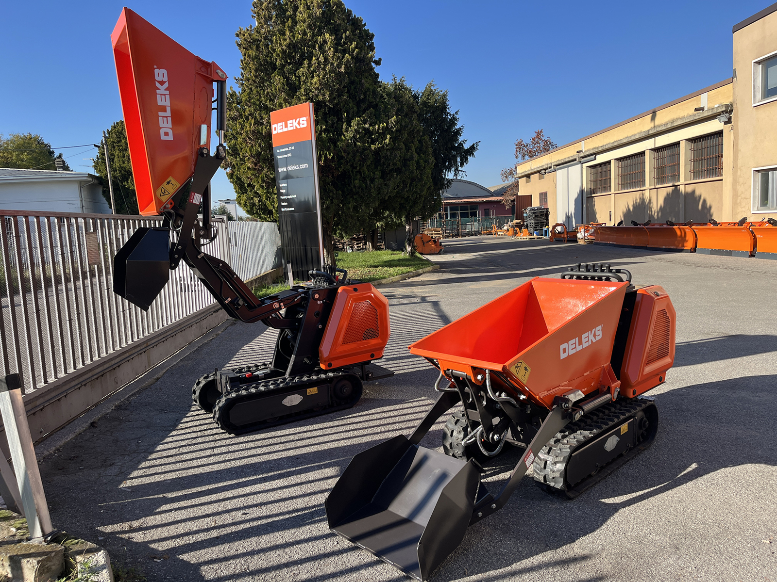 DELEKS® M8000-KUBOTA professional tracked self-loading mini dumper with hydrostatic transmission, high-tip dumper body, operator platform and Kubota diesel engine with electric start.
