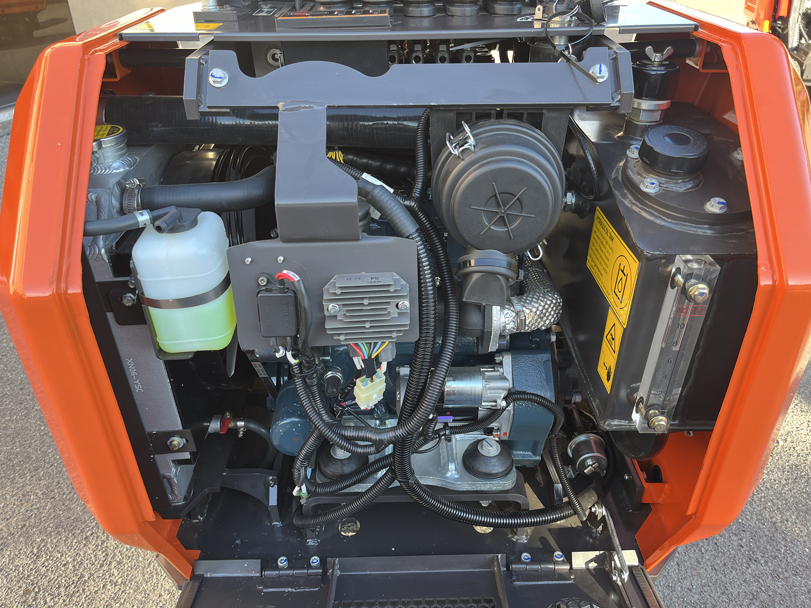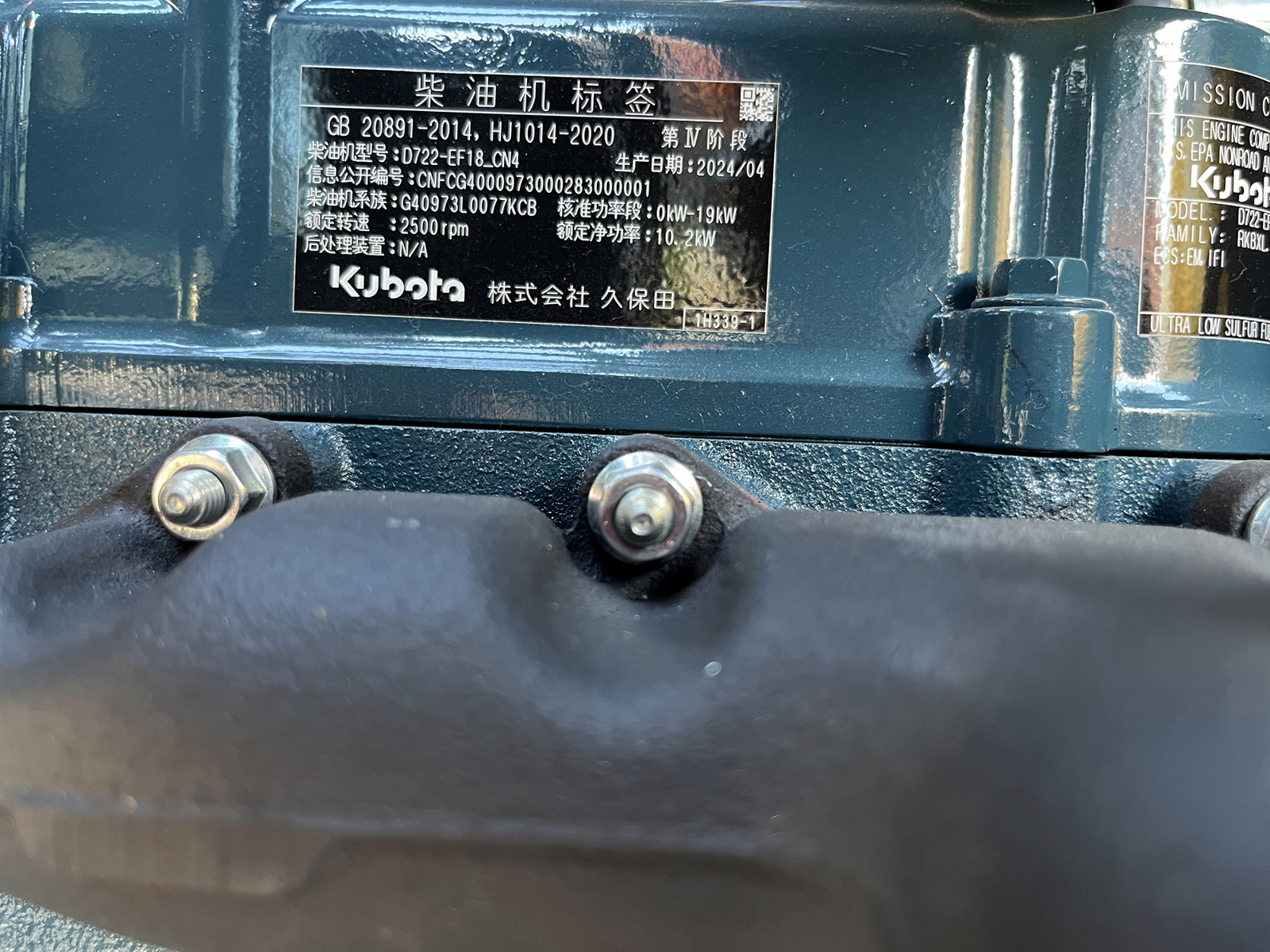 It is equipped with a Kubota D722 three-cylinder diesel engine, renowned for its robust construction, high torque at low RPM, low fuel consumption and long operating life, making it ideal for continuous use in construction, agricultural and industrial environments.