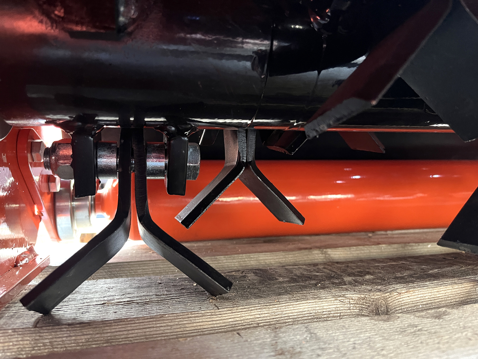b) The rotation of the knives goes in both directions (a double-acting pedal is necessary).