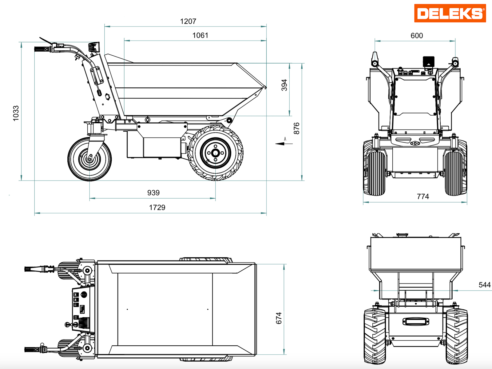 A typical use is combined with a DELEKS® Mini Excavator, for transporting gravel, earth, mud, sand, building materials, etc…