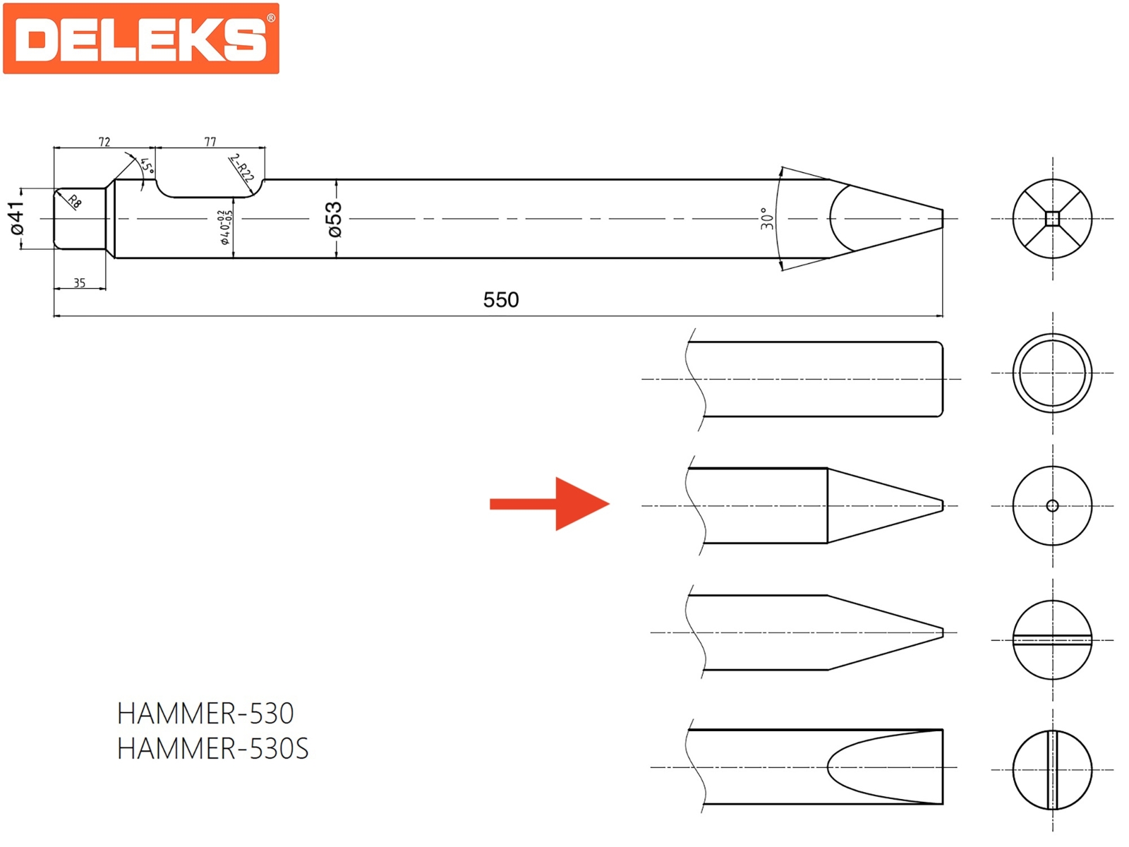 DELEKS® Conical chisel for hydraulic hammer.