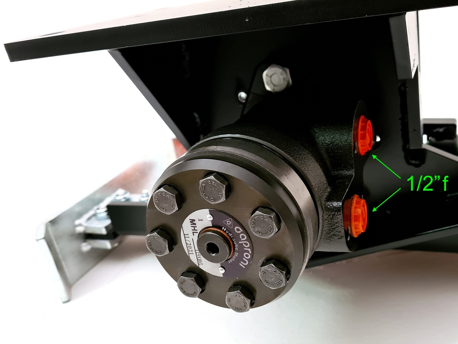 Hydraulic cutter bar DELEKS® HRD is ideal for grass, and precise work on hedges and trees with fine branches (max 1cm in diameter). The set-up includes the hydraulic motor and the mounting plate with 4 mounting holes (measures shown in the images).
