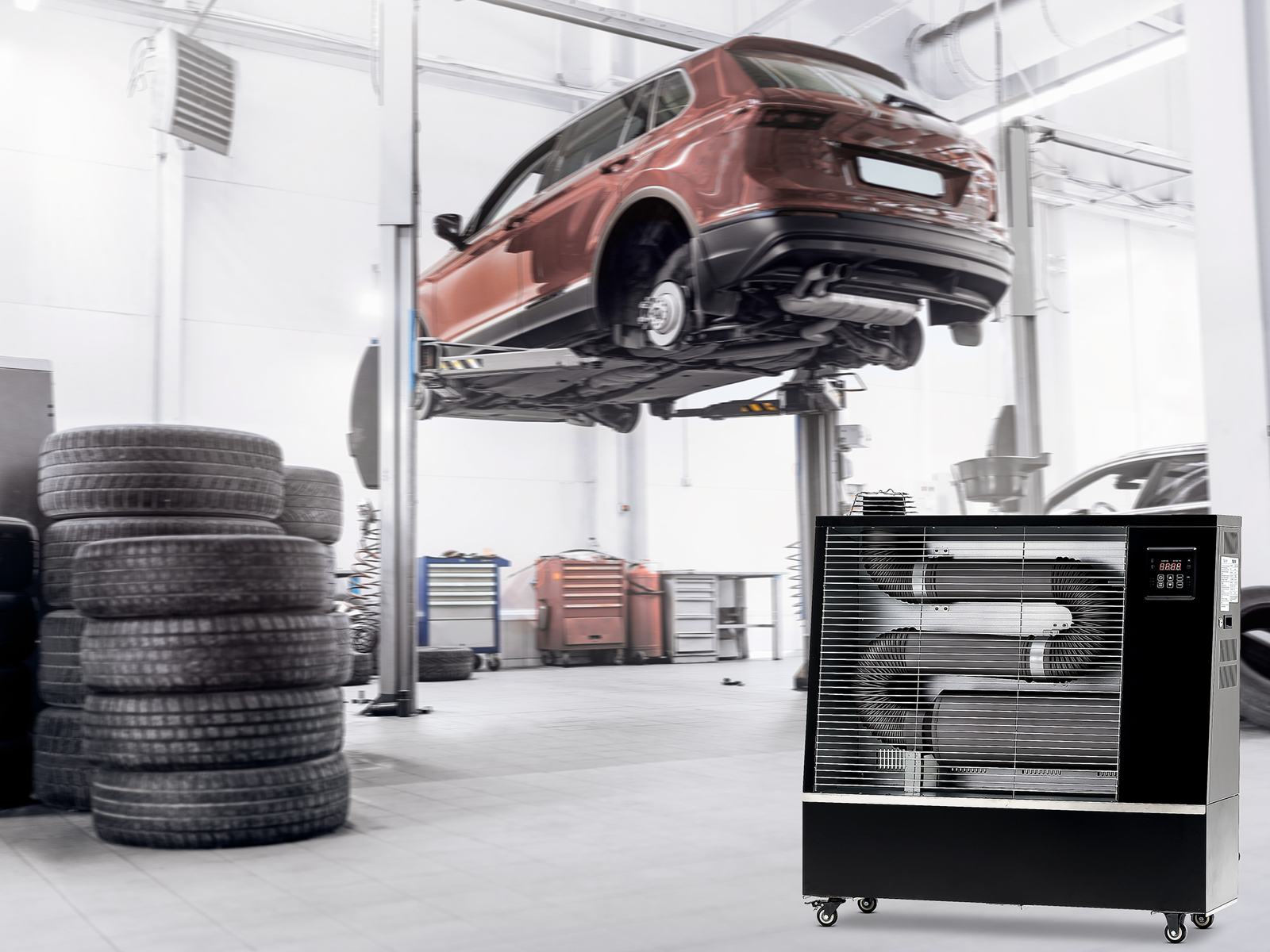 Innovatives Heizsystem für belüftete, geschlossene Räume ( Werkstätten, Gewerbe, Industrie, Landwirtschaft, Lager, Turnhallen) und Außenbereiche wie Gewächshäuser, Terrassen, Baustellen, etc.