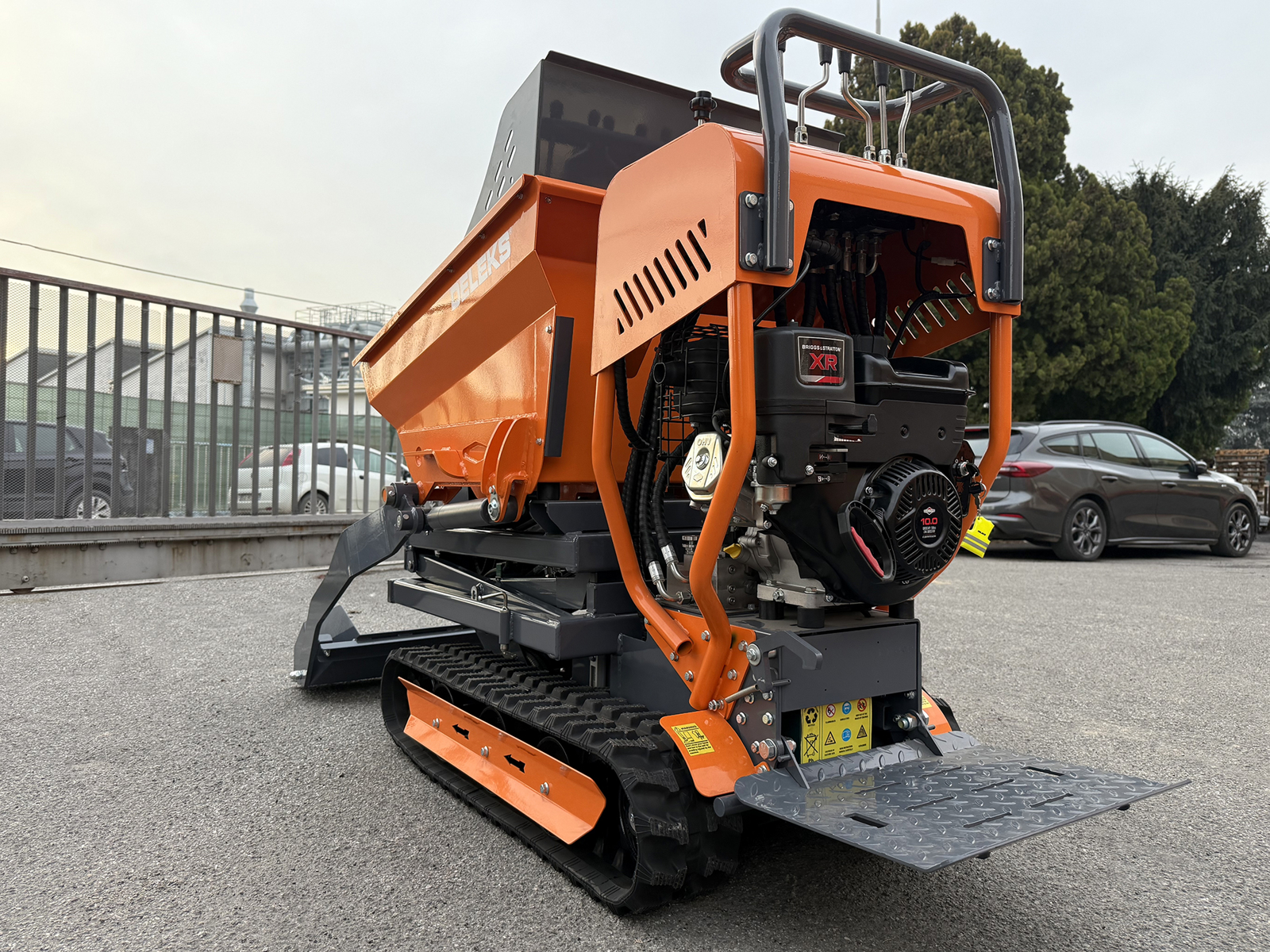CLOSEDELEKS® V3000HBS professional tracked self-loading mini dumper with high tip, hydrostatic transmission, operator platform and Briggs & Stratton engine with electric start.