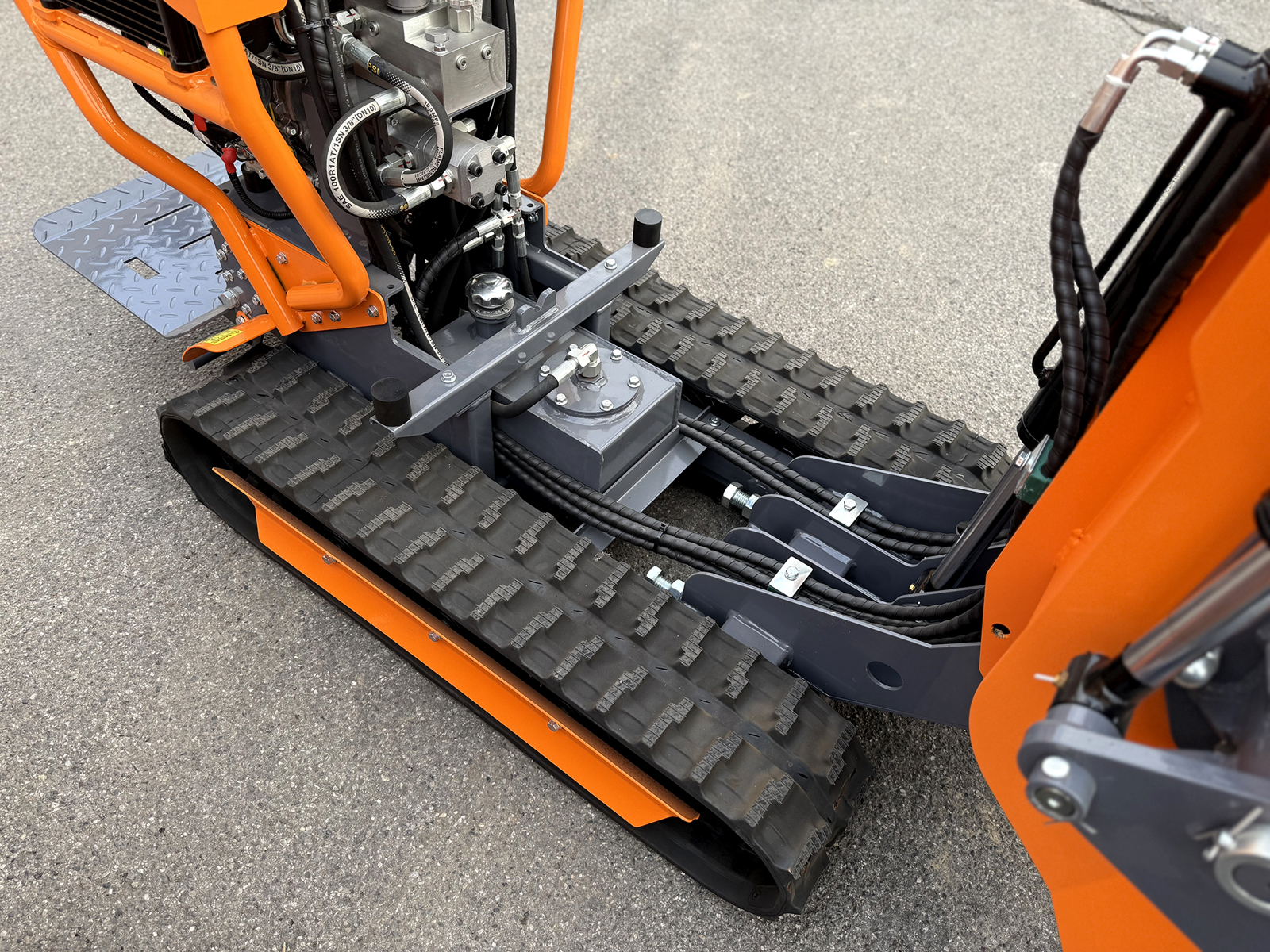 Compact tracked power barrow designed for material handling in confined spaces, construction sites, farms and professional environments.