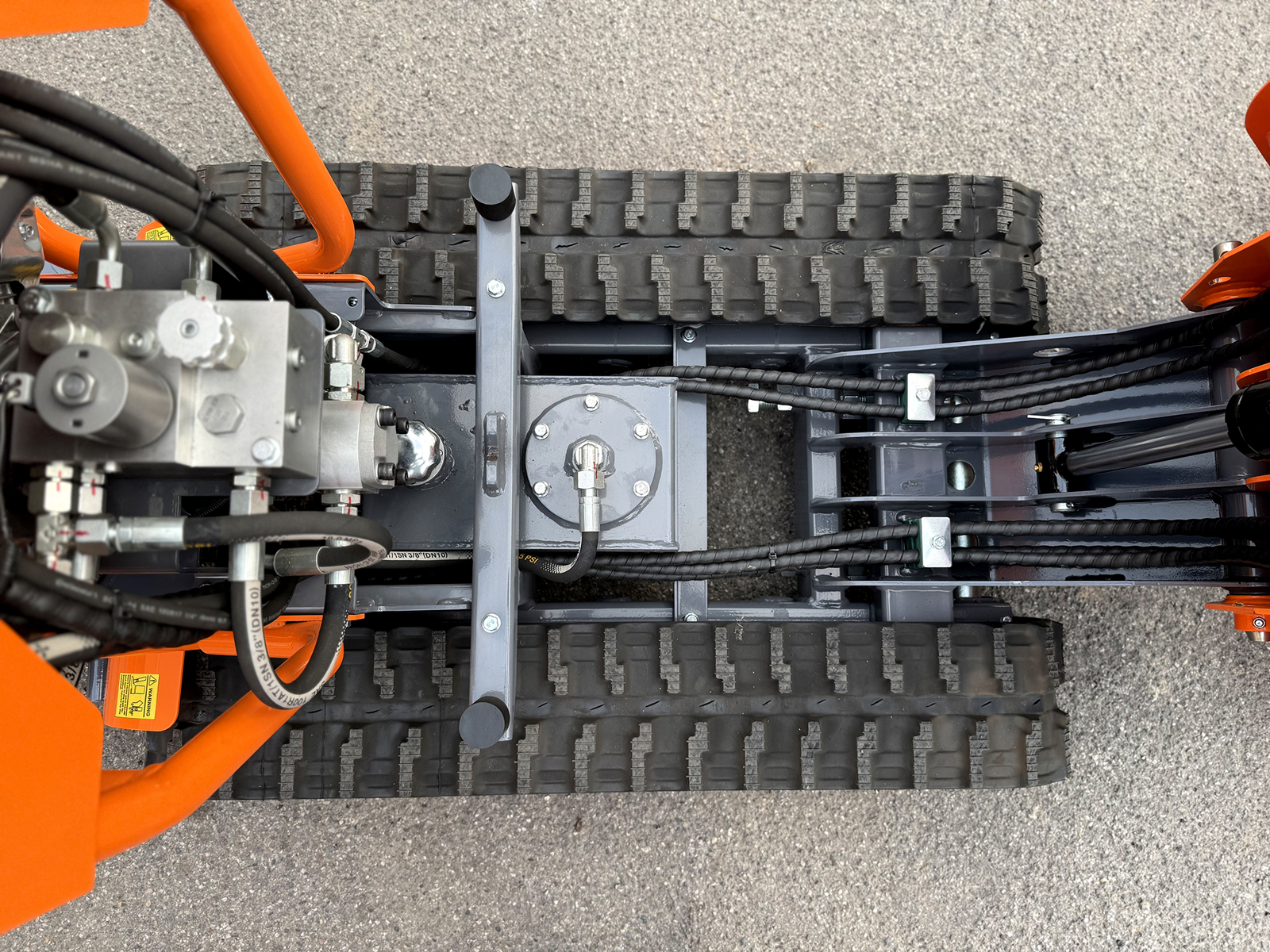 The tracked drive system guarantees stability, excellent traction and low ground pressure, allowing safe operation on uneven, muddy or sloping terrain.