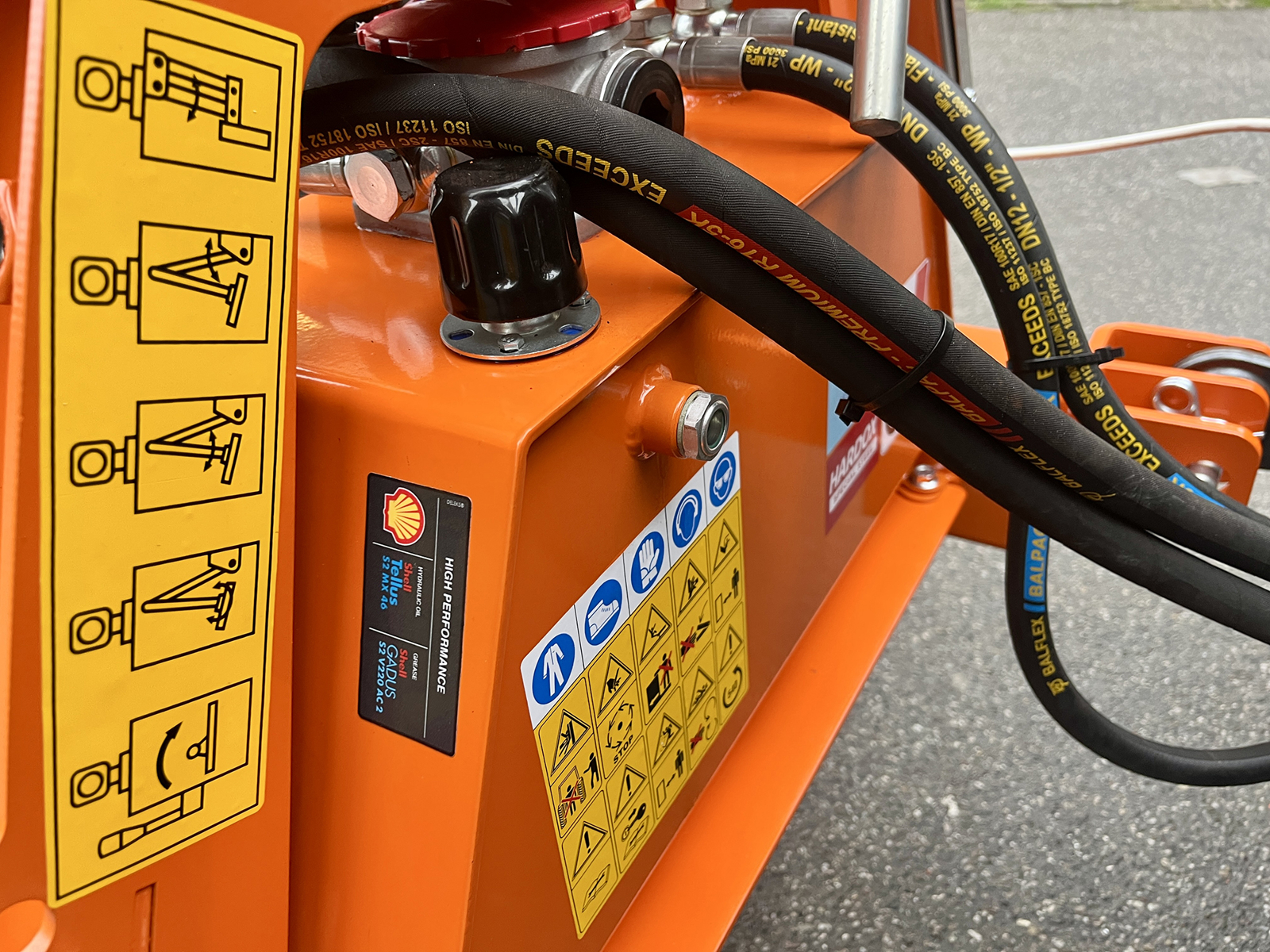 Length of the hydraulic pipes to the hydraulic pump (PTO): 900 mm.