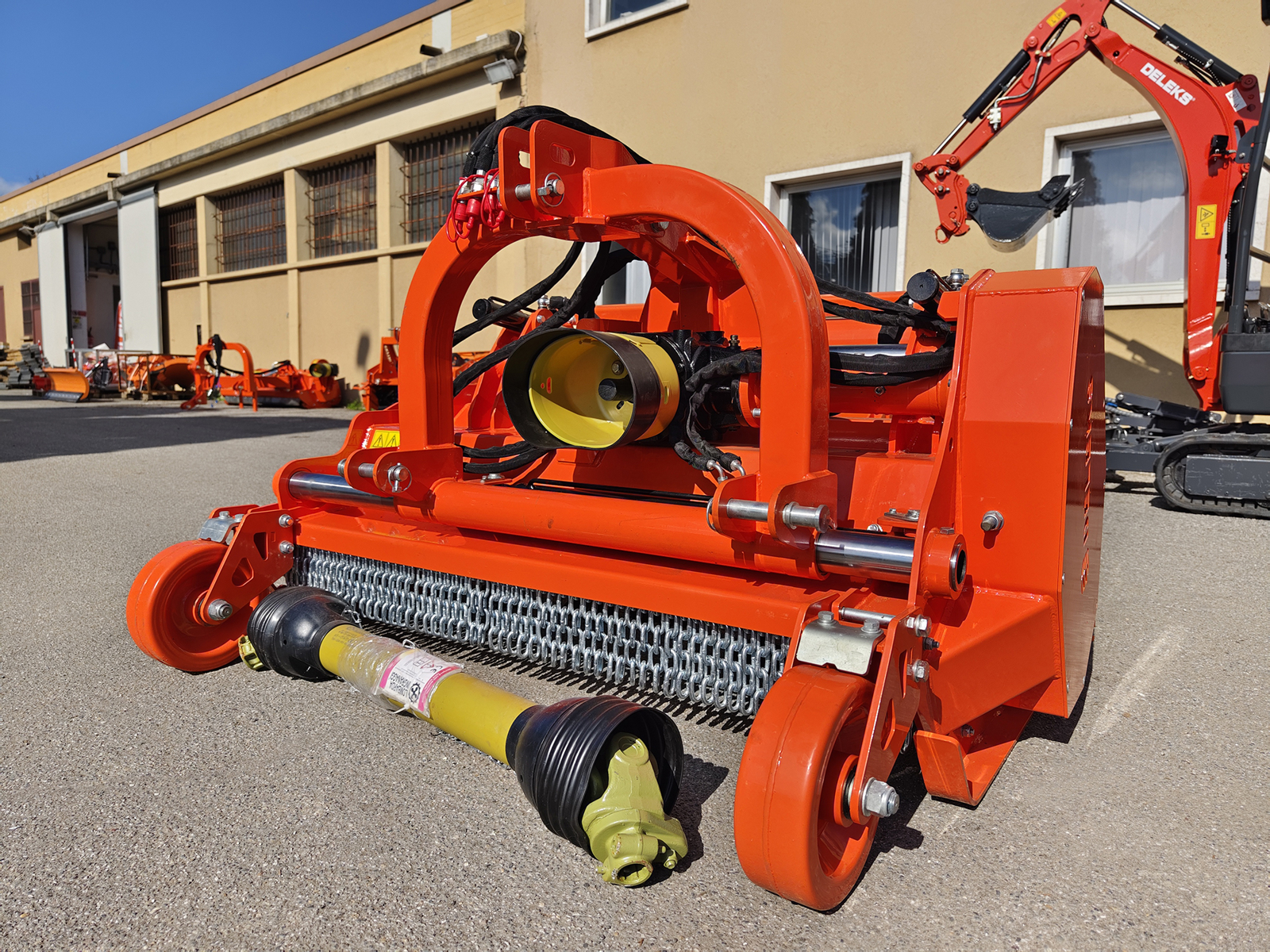 In the vineyard / orchard: allows pruning residues to be shredded without treading on windrows, as the rear panel with roller can be raised hydraulically thanks to the 2 pistons mounted on the sides.