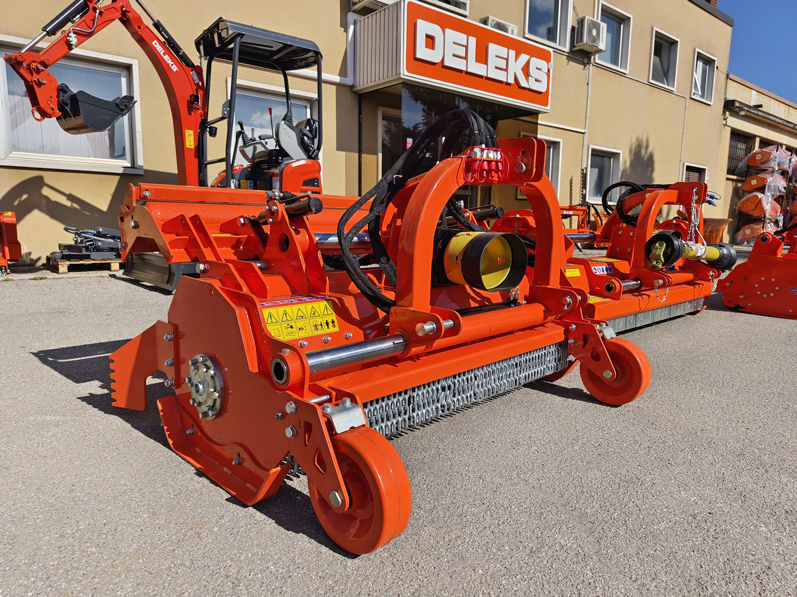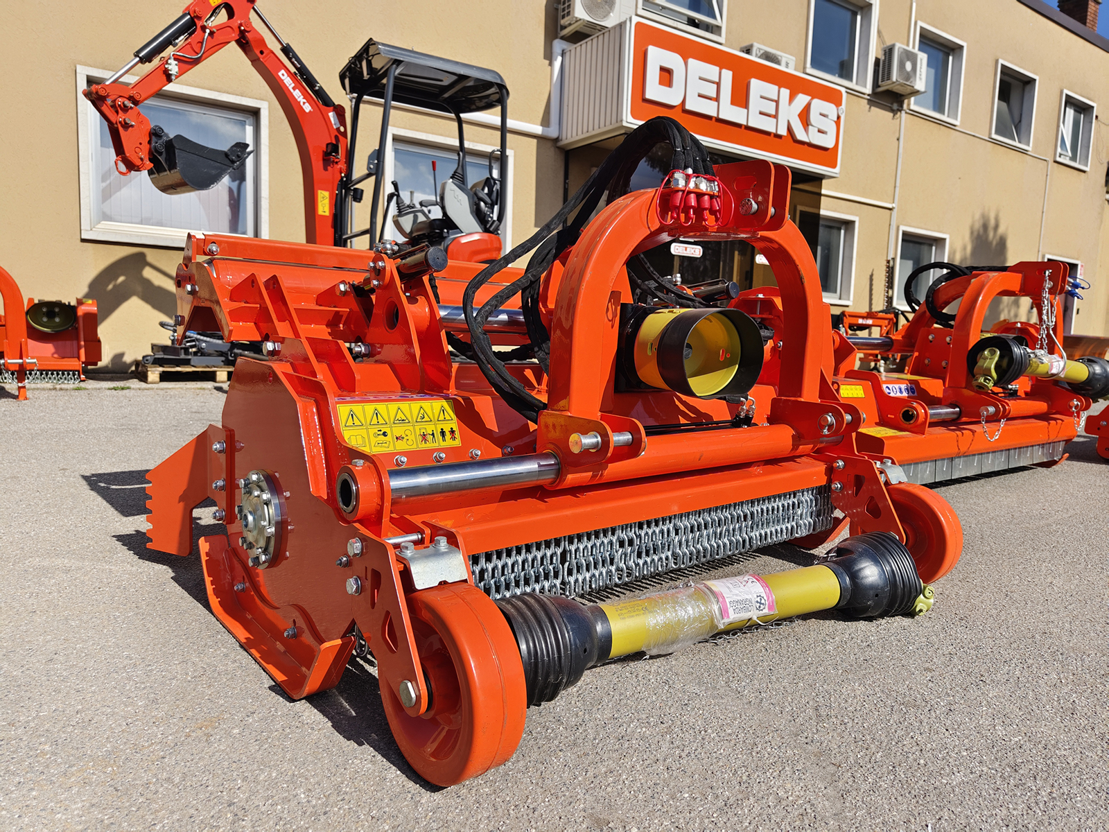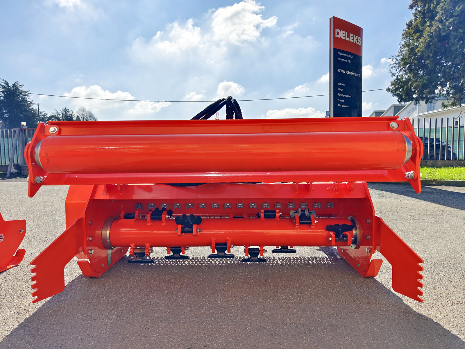 DELEKS® GORILLA-150 heavy-duty series shredder ideal for shredding vineyard, orchard, olive grove and woody material up to Ø 15 cm. Hydraulic drive and cardan shaft with safety bolt.