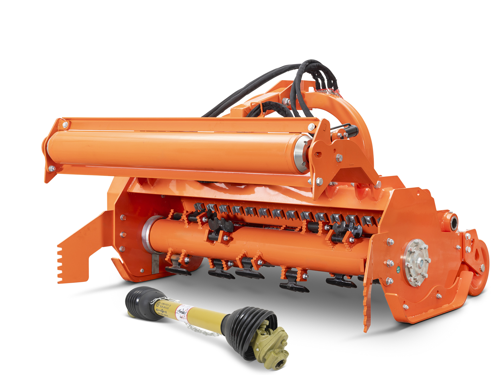 CLOSEDELEKS® GORILLA-150 heavy-duty series shredder ideal for shredding vineyard, orchard, olive grove and woody material up to Ø 15 cm. Hydraulic drive and cardan shaft with safety bolt.