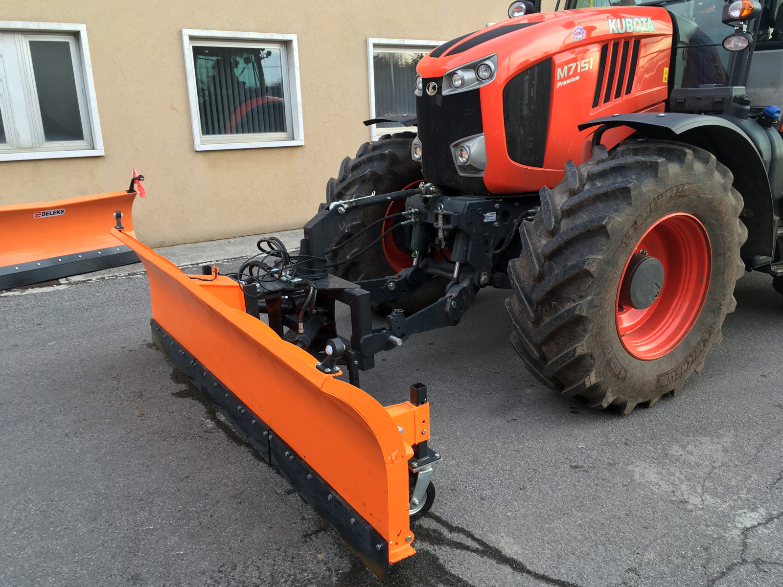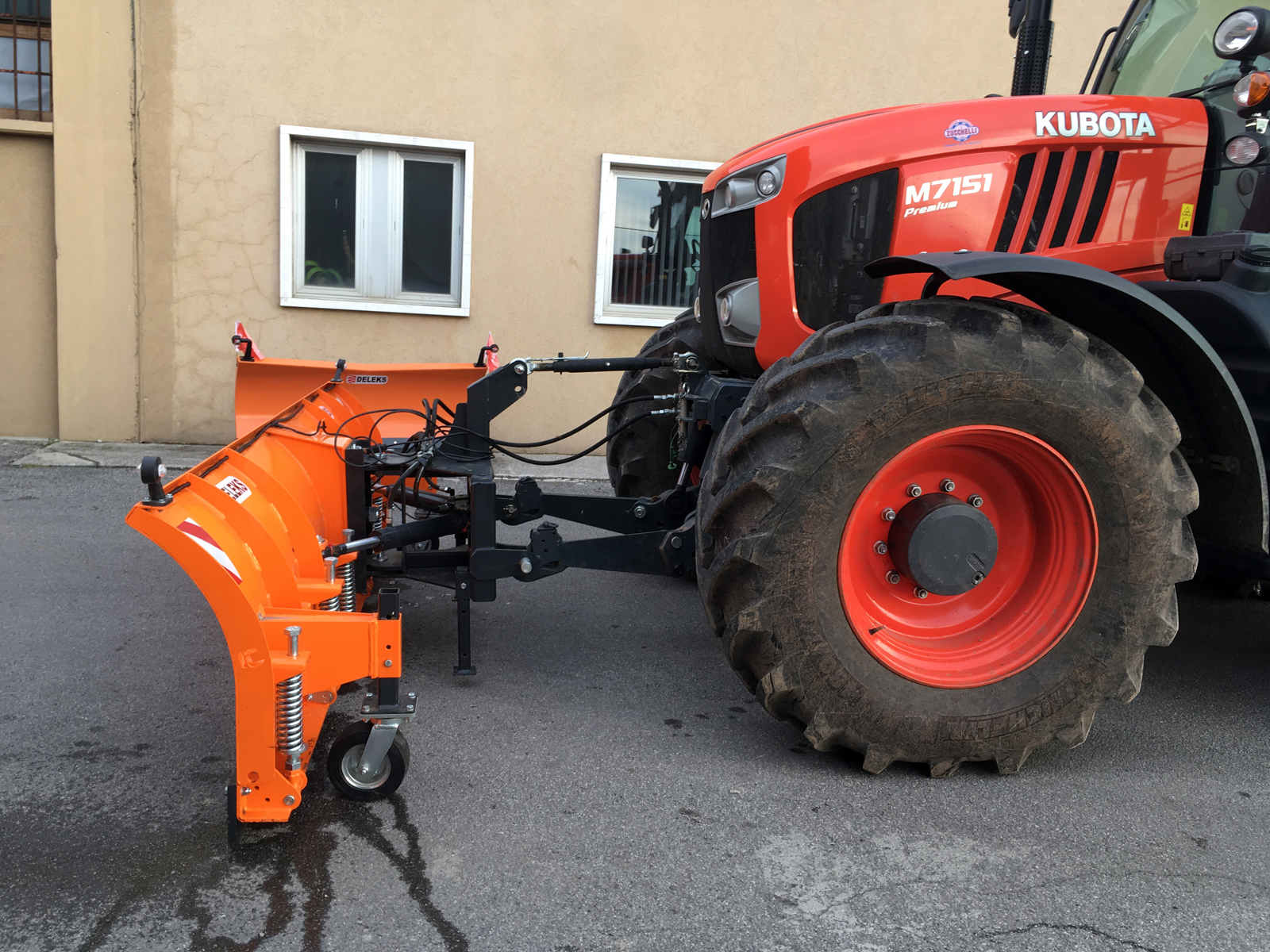 SSH-04 2.6-C Heavy-duty snowplow has been designed for larger tractors with 3-point hitch of Cat. 2-3, with power range from 90 to 130hp with rear or front linkage. Compatible with all tractors as Landini Power, M Kubota, Massey Ferguson, John Deere 5 Series, Same Explorer, Fiat, Case, Claas, Deutz-Fahr.