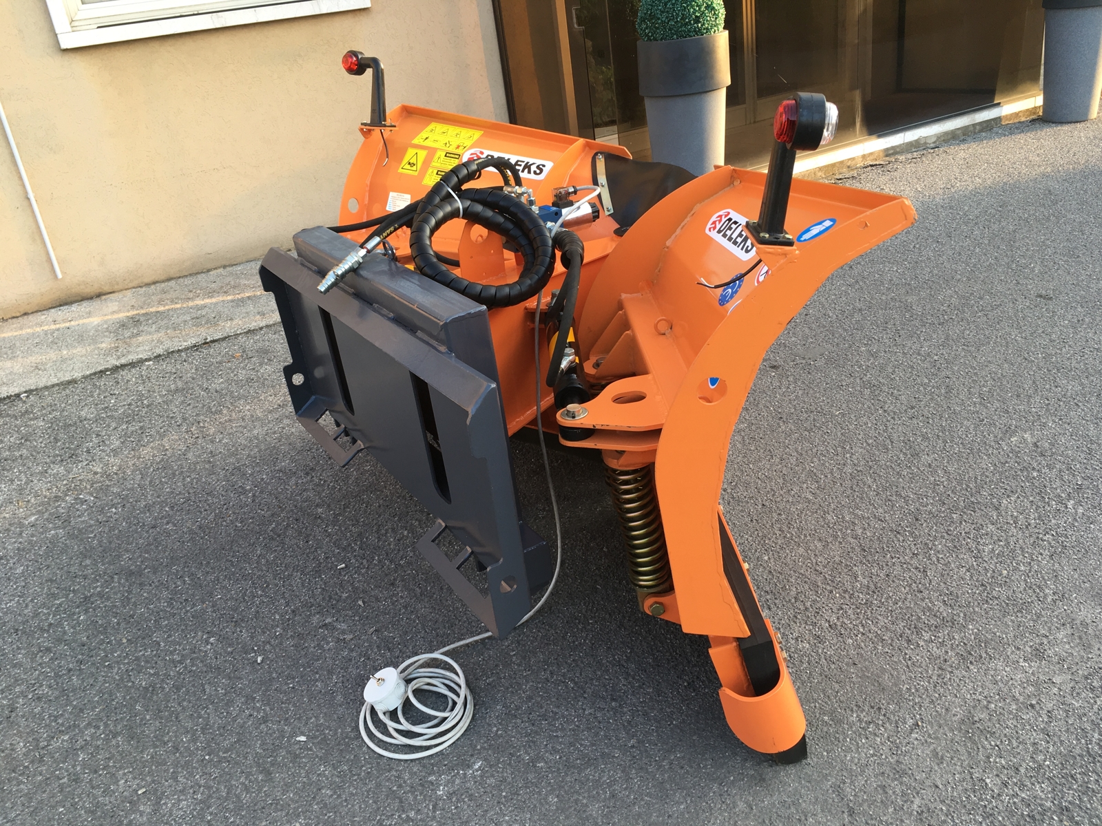 CLOSESnow plow, Snowblade 200cm/370kg for up to 3.0 ton Skid steer loaders - DELEKS® - 2 independent plowing elements - Hydraulically controlled plowshares.