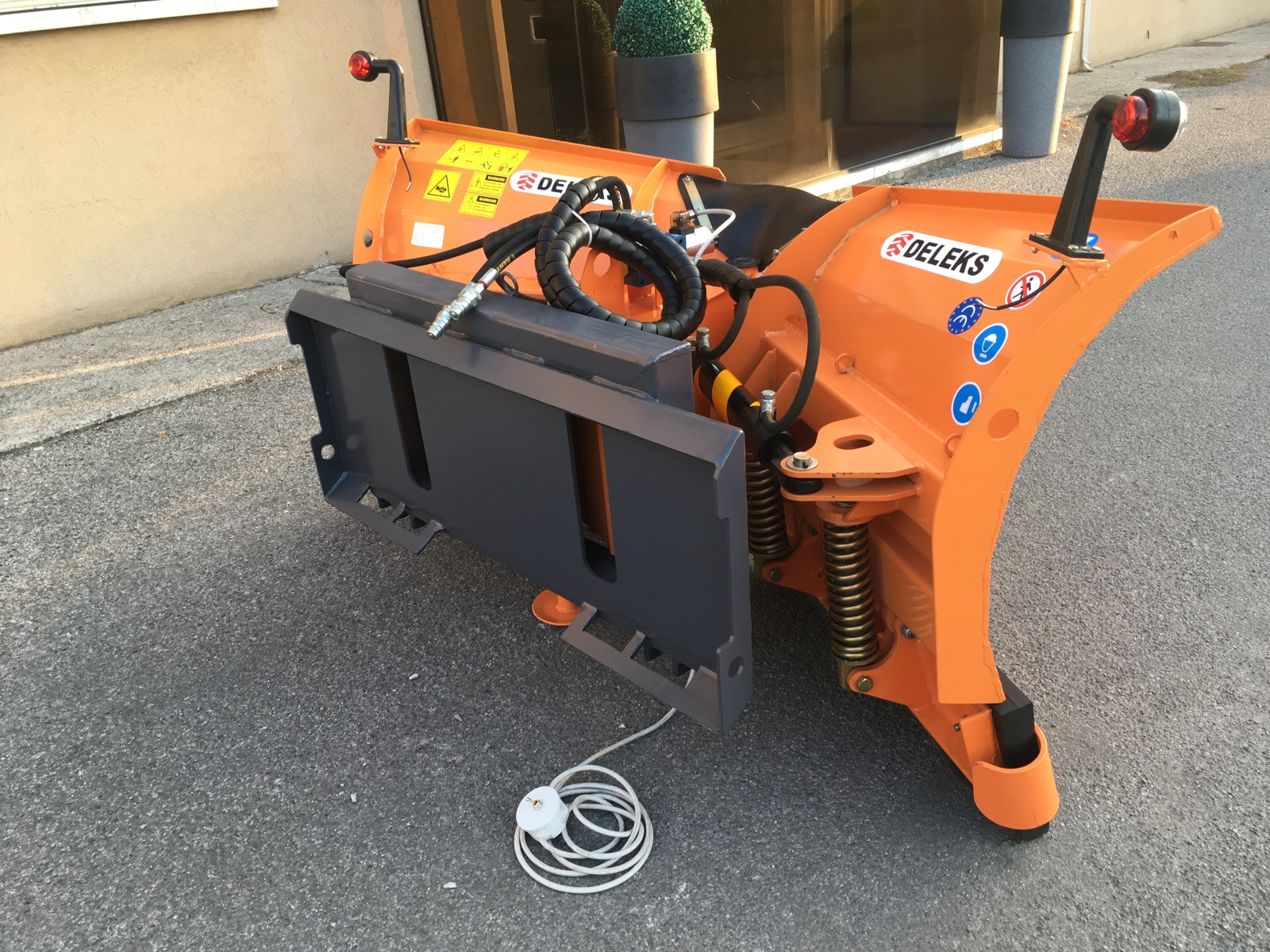 CLOSESnow plow, Snowblade 250cm/425kg for up to 3.0 ton Skid steer loaders - DELEKS® - 2 independent plowing elements - Hydraulically controlled plowshares.