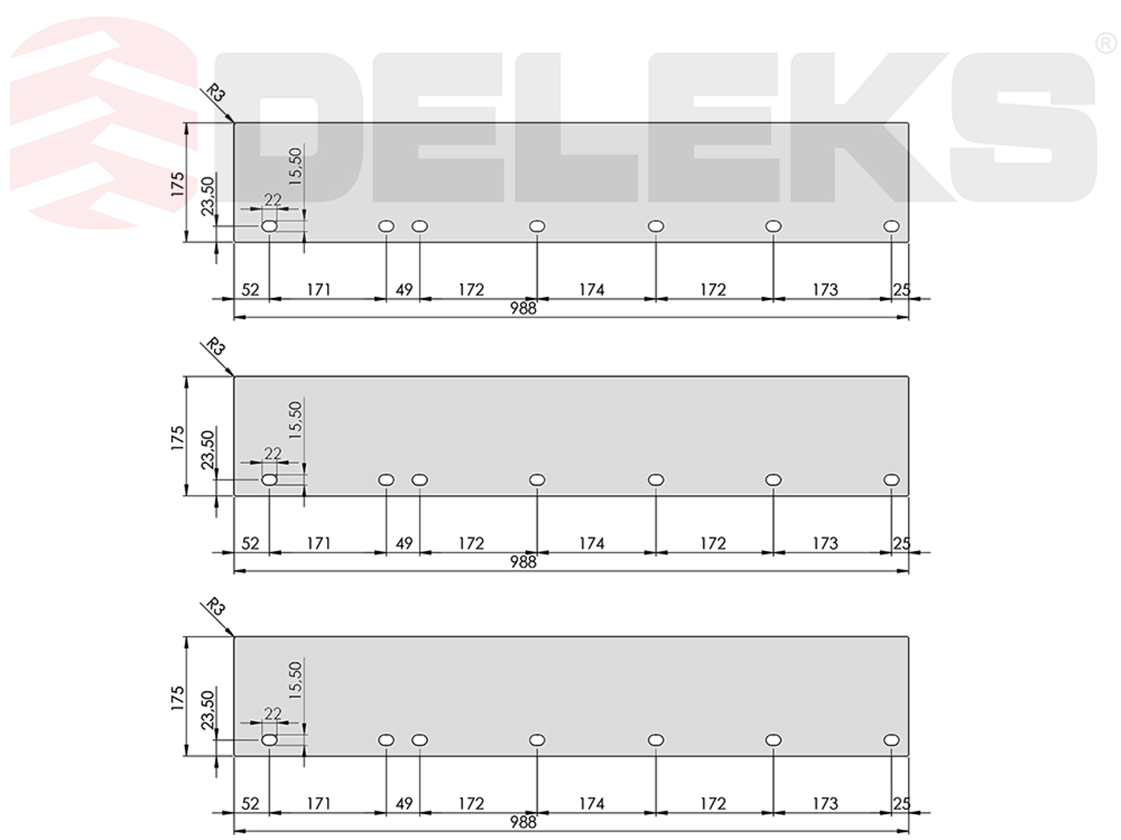 | Spacing between the bolts of the Cutting Edge | 175.0 mm |