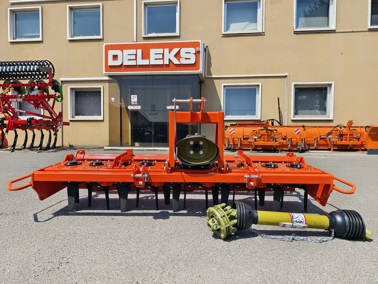 DELEKS® Power Harrow 206cm for tractors from 55 - 80 HP, equipped with standard rear net roller (grit roller available as an optional) and single speed gearbox for P.T.O. 540 r.p.m.