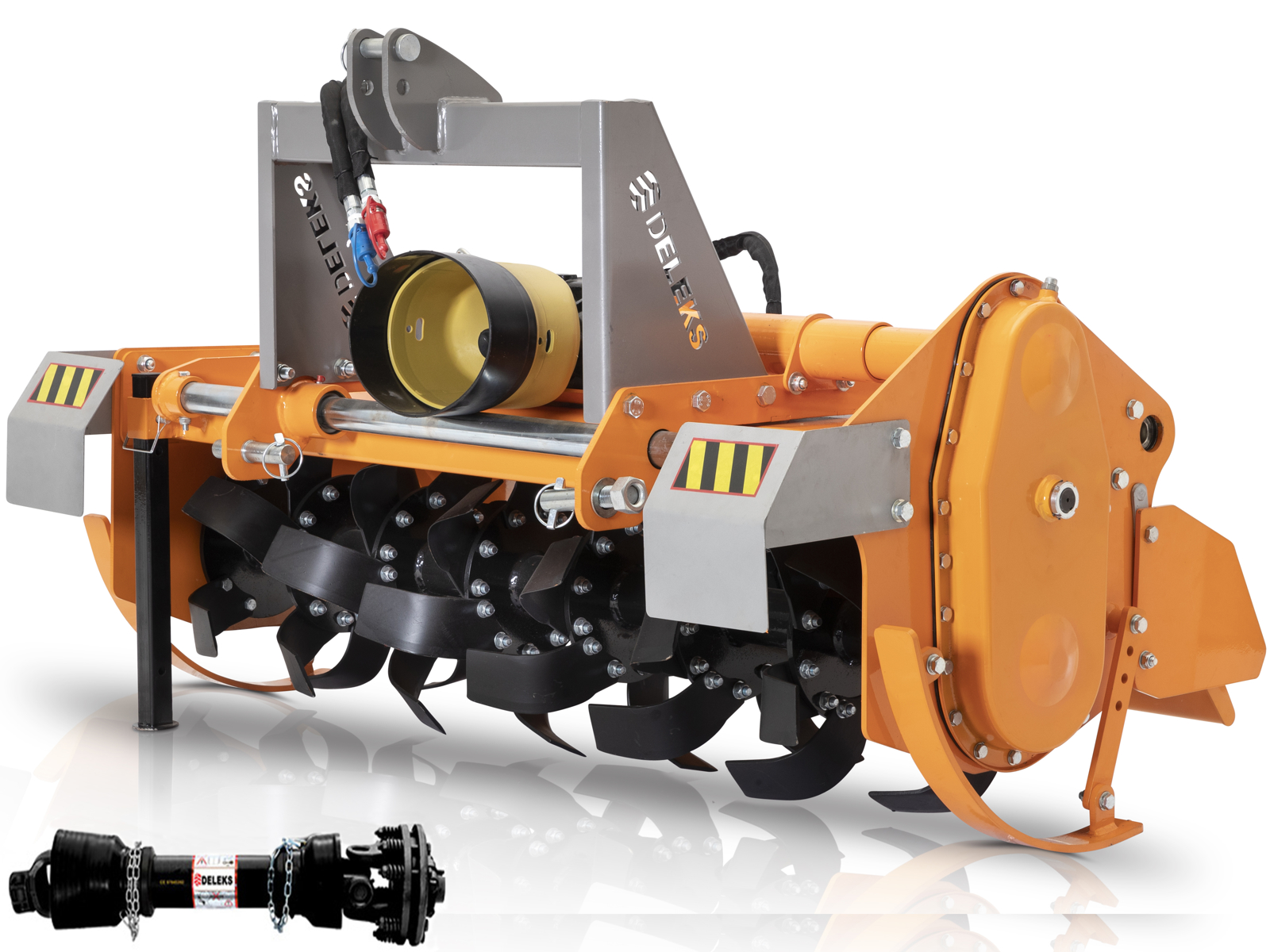 Rotary Tiller DELEKS® for 50-70HP Tractors, Rotovator 180cm / 400kg - 330mm Hydraulic offset - Side Gears Drive - Pto shaft CE included.