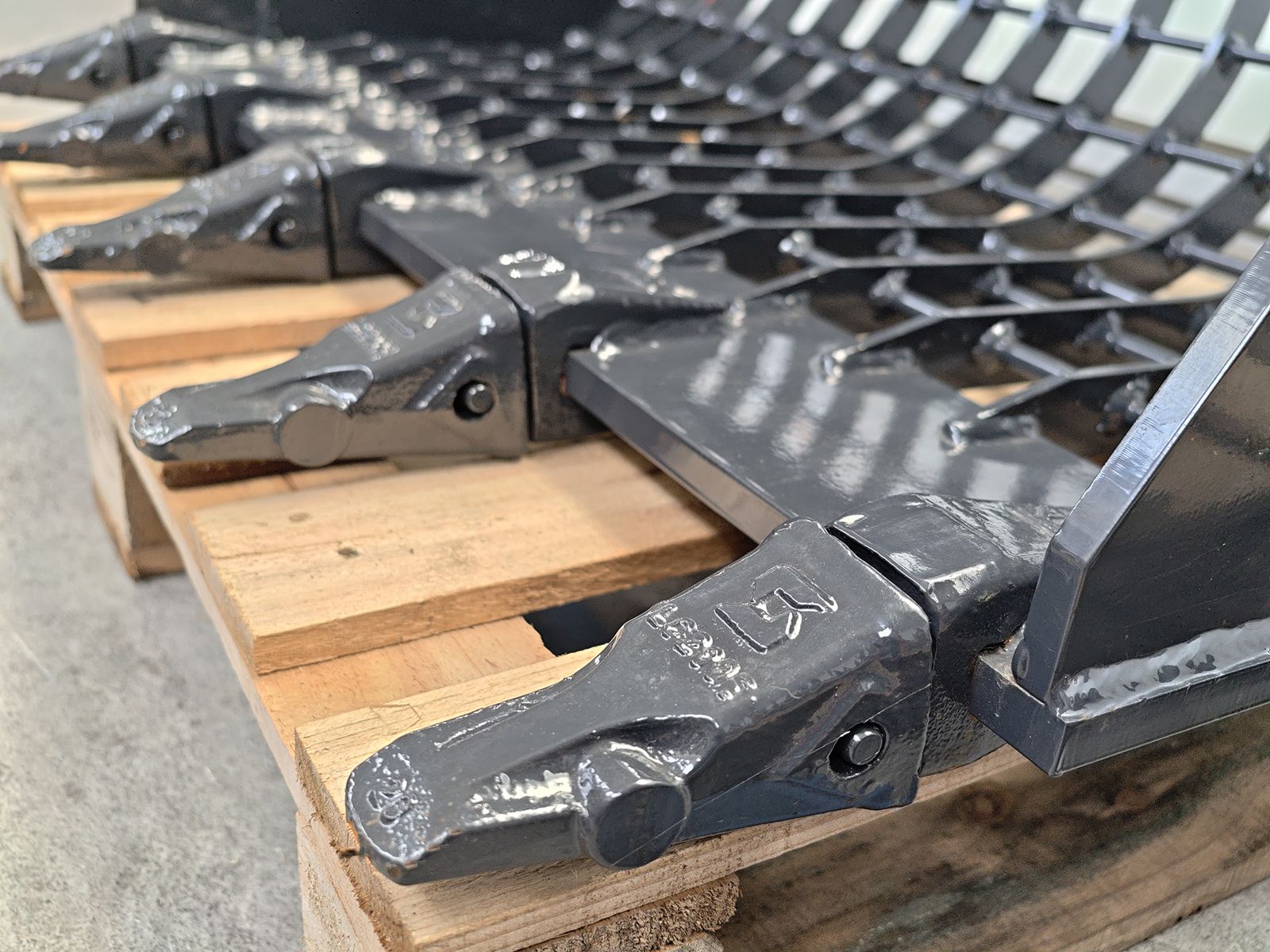 The bucket is equipped with 7 interchangeable teeth engineered for penetration in compact ground and long service life.