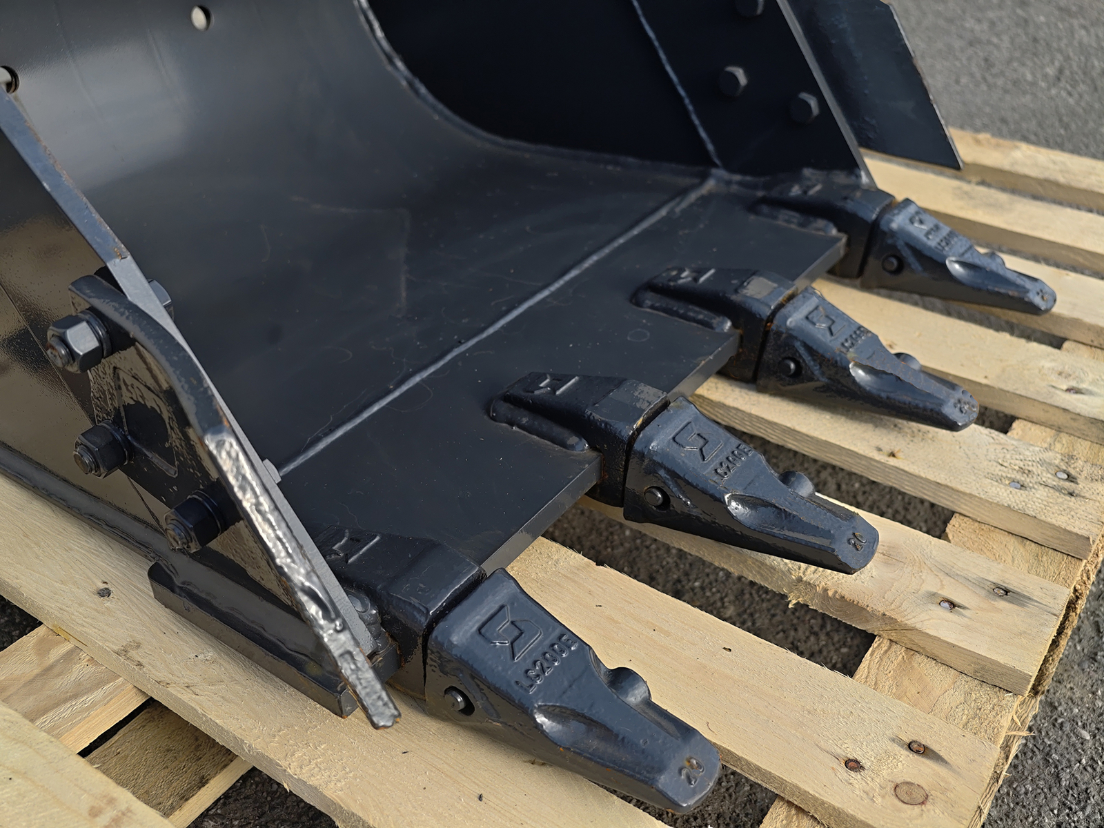 The reinforced steel structure ensures high durability and resistance to torsional loads when working in mixed or compact soils. The bucket geometry improves soil penetration and increases material loading capacity.