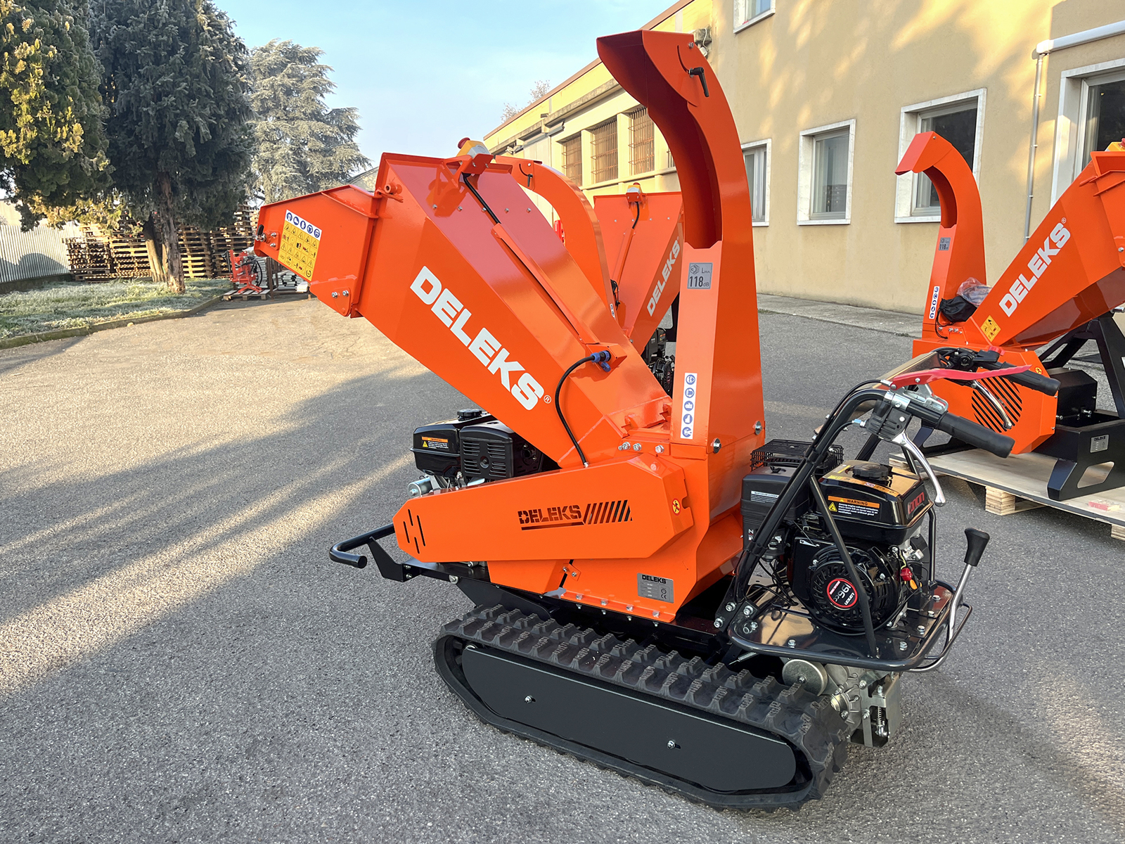 Tracked drum wood chipper designed for chipping dry and green wood up to 10 cm in diameter, engineered to operate safely on uneven and sloping terrain. The tracked drive system and particularly low center of gravity make this machine ideal for professional use in agriculture, forestry and green area maintenance.