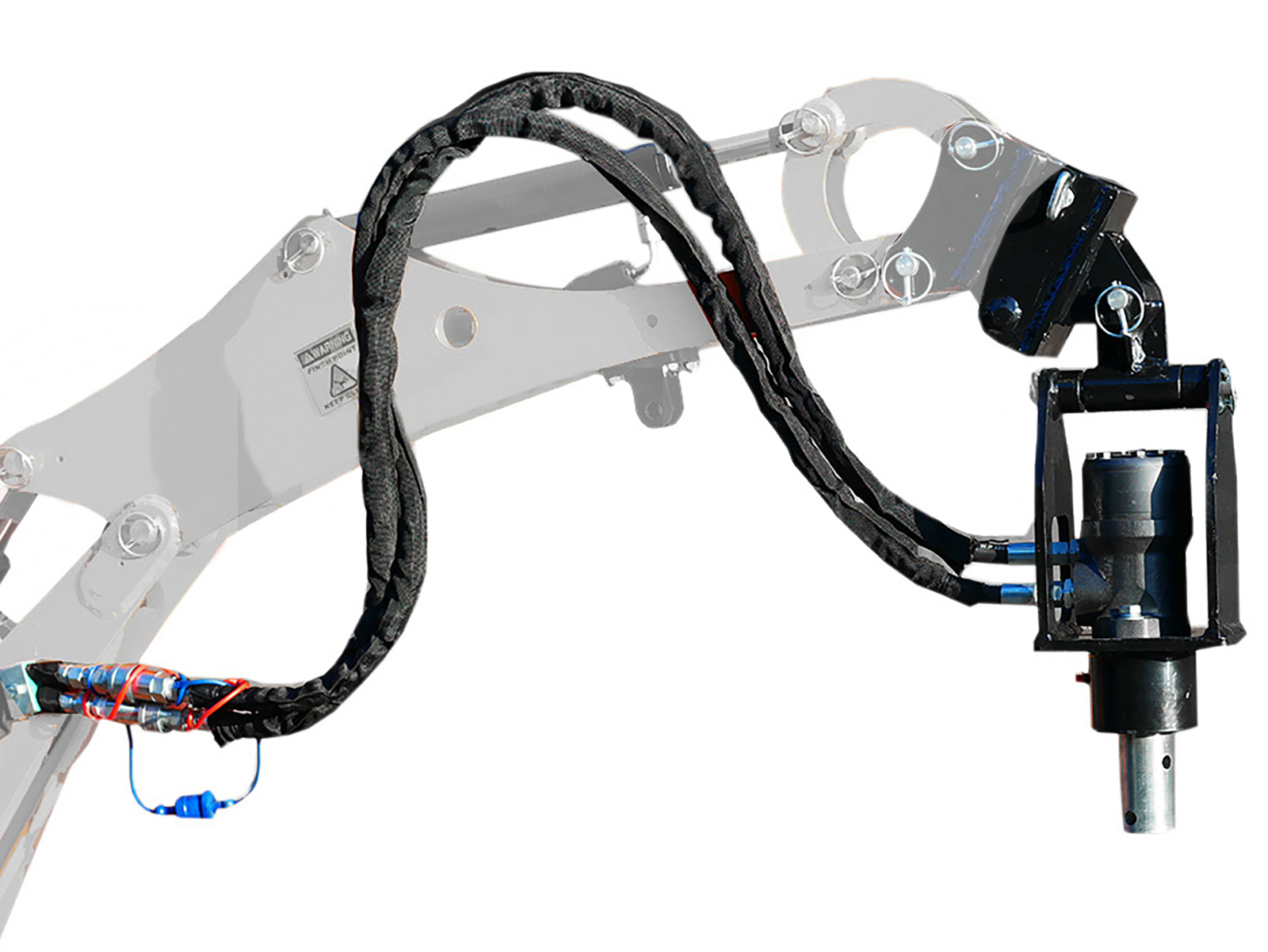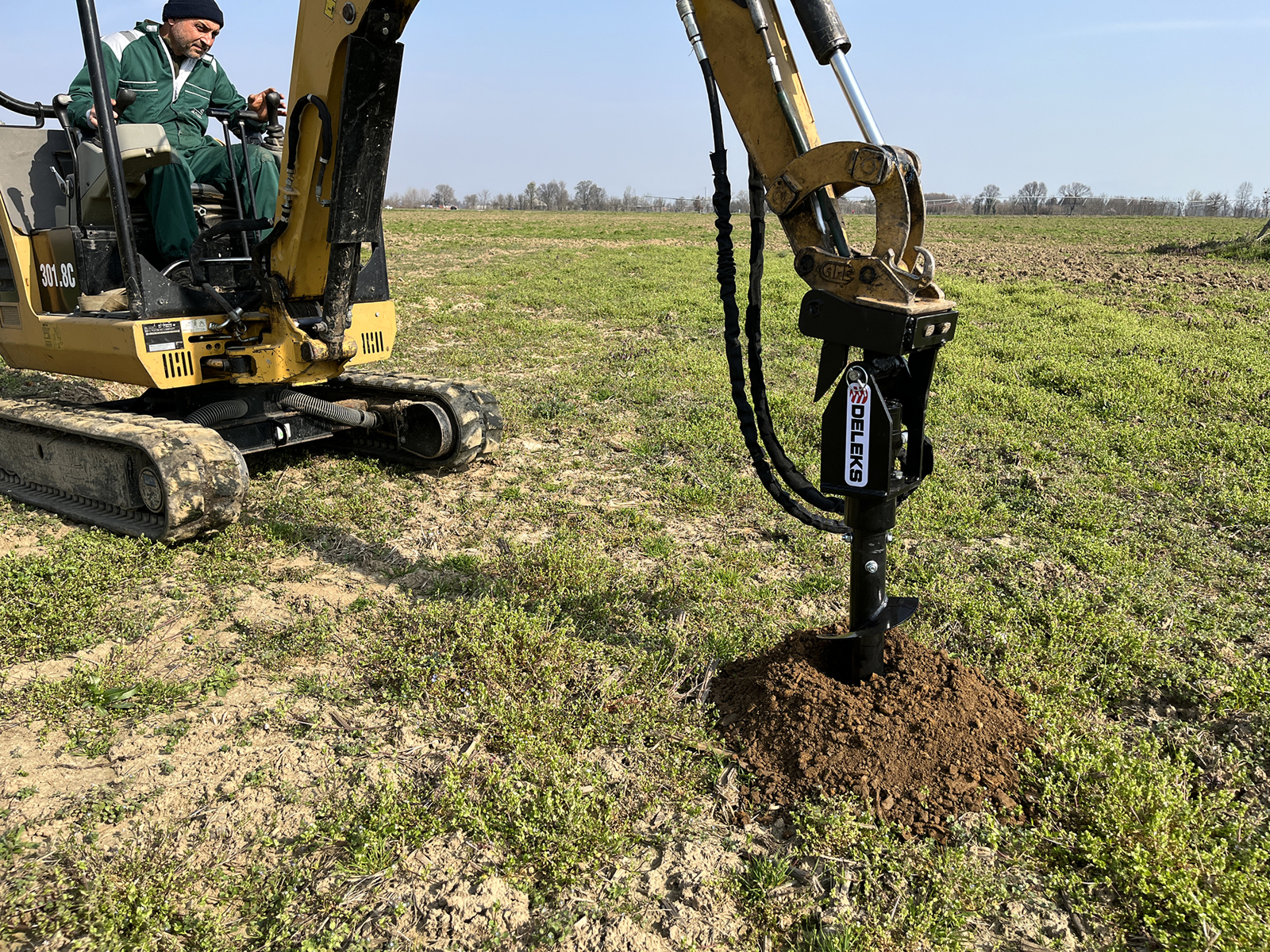 The DELEKS® GRHD-200 hydraulic earth drill / rotator is suitable on small excavators, wheel loaders, farm loaders or tractors with front loaders.