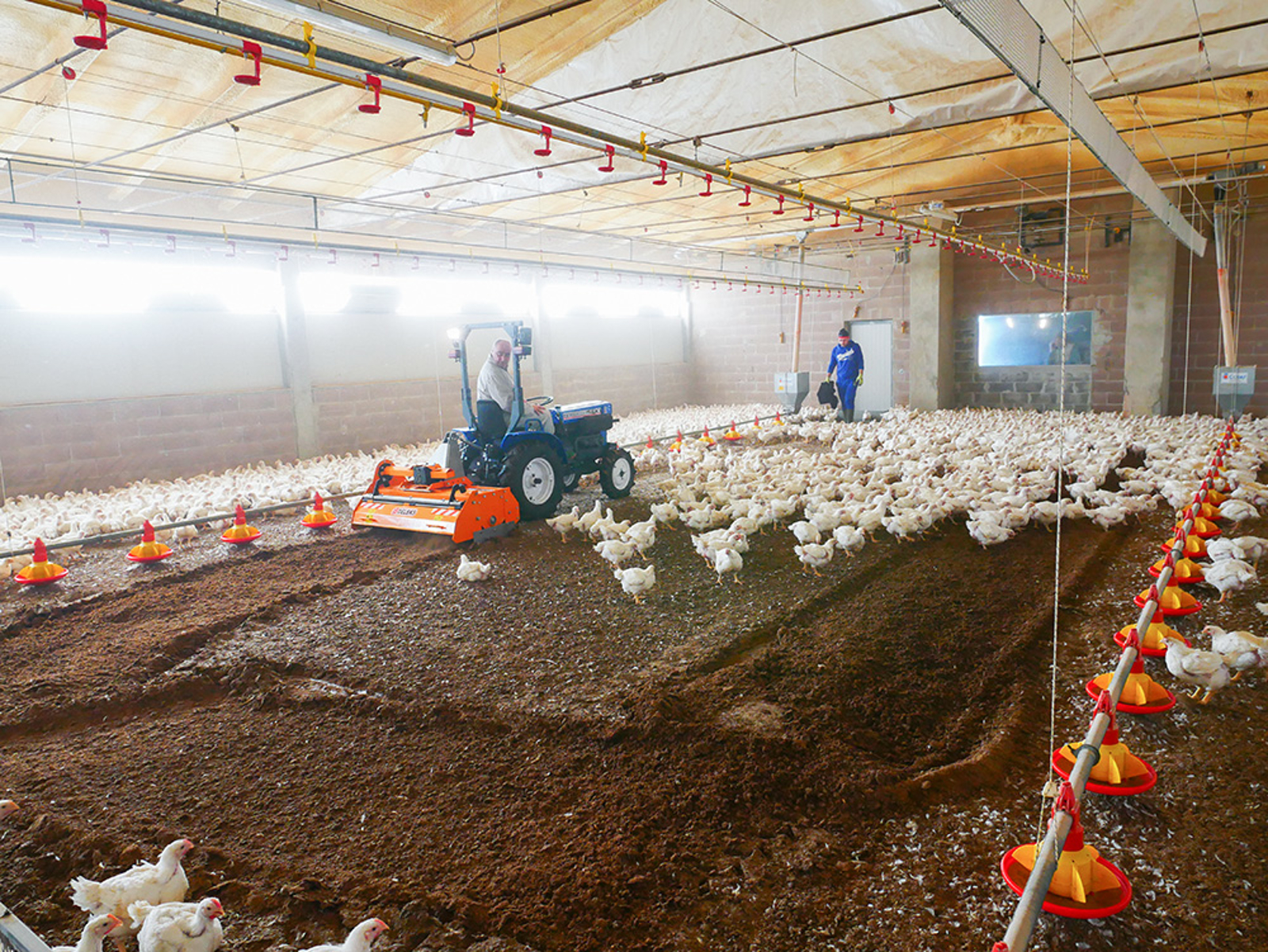 The machines hoes mix and turn all the layers of the litter and distribute the dry chips on the surface.