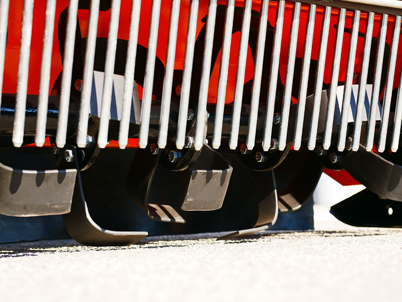 Prevents the formation of pavement crusting : detaches, raises and shatters the hardest and most dry part of the litter attached to the ground.