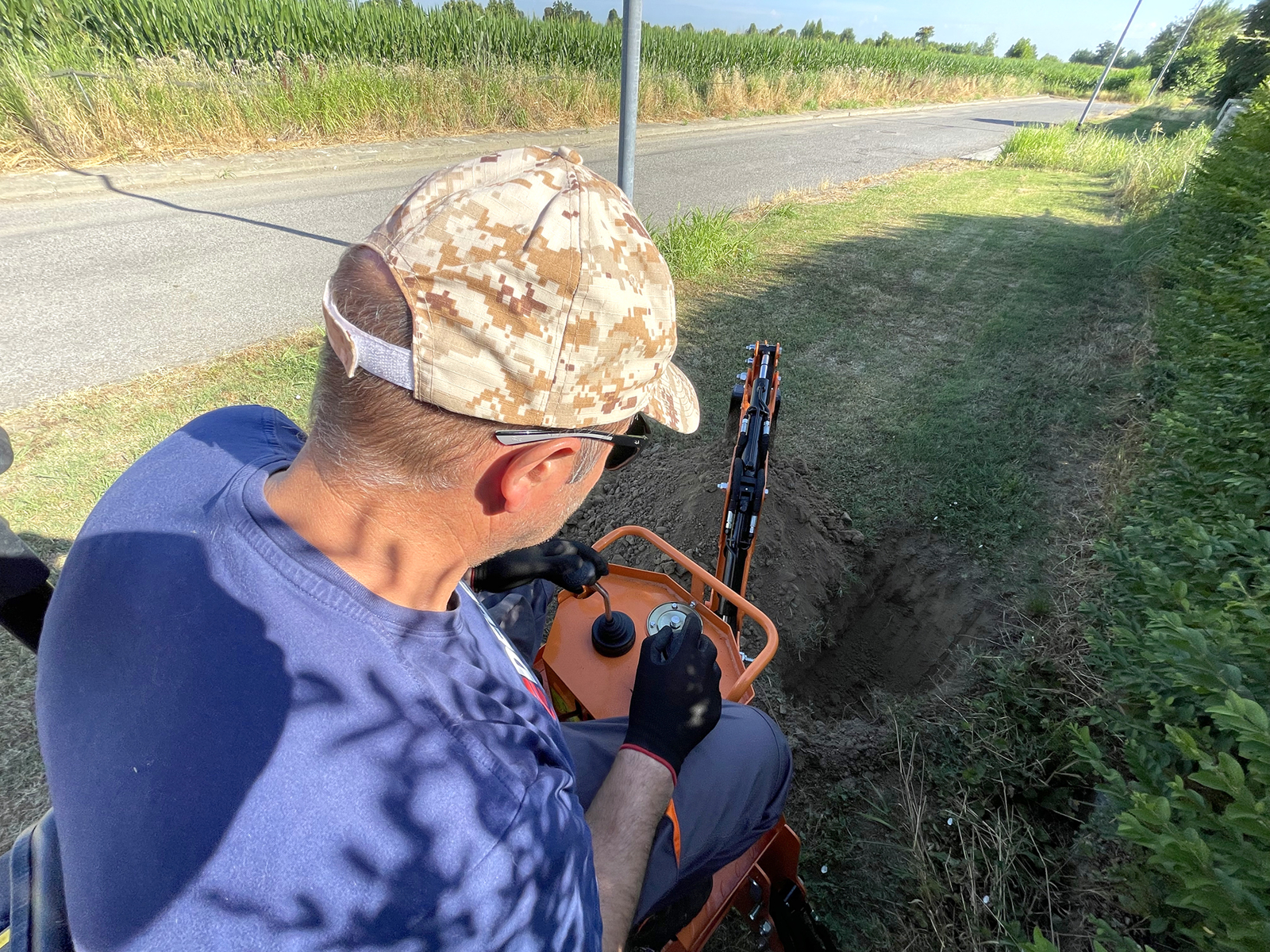 Dig ditches, dig soil, trench plumbing lines, haul piles of dirt or rocks.