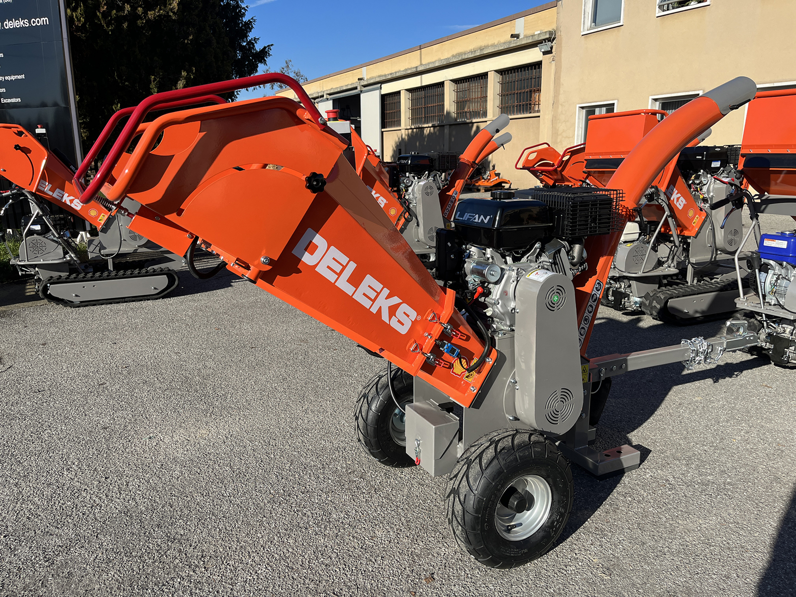Professional Wood Chipper DELEKS DK-800-LF with 15 Hp engine, 4 stroke gasoline engine, E-Start.