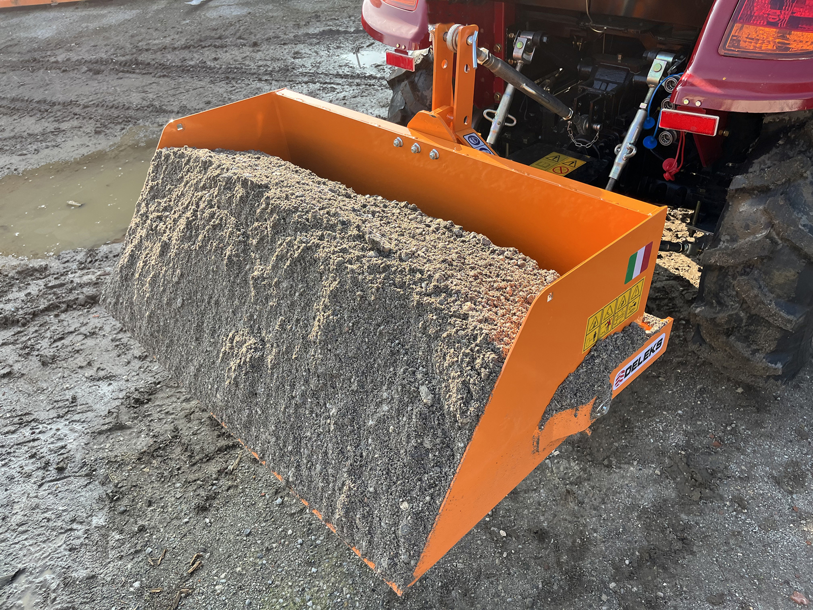 BUCKET-120-H "Made in Italy" light multiple use transport box is made from reinforced steel so can handle loading and transporting everything from sand to snow and Ice. It can also be used for digging, leveling, grading and dumping a variety of applications and materials. Hydraulic tipping mechanism operated from the cabin of the tractor. Suitable for 14-40HP tractors e.g New Holland Boomer 25-30 or TI13, John Deere 1-2 Series, or Japanese tractors e.g. Kubota B and BX, Iseki TM–TH, Yanmar, etc. EC Conformity, 2 Year warranty.